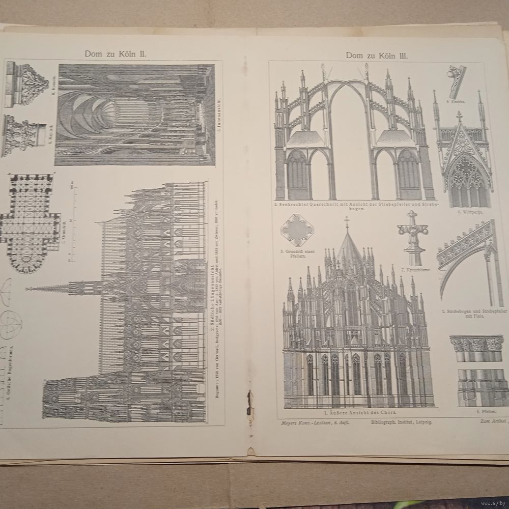 Dom zu Koln Энциклопедическая гравюра конец 19в. Германия. 31х24см
