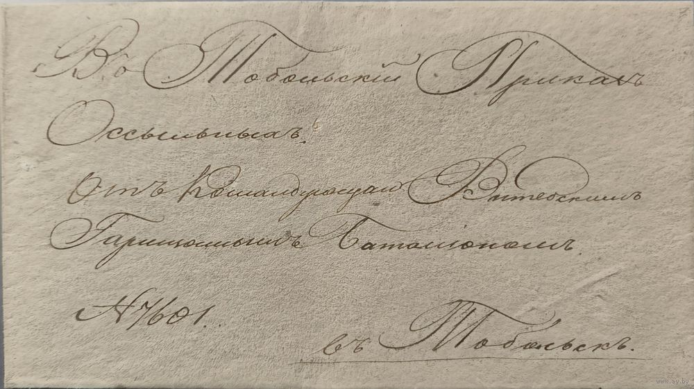 Домарочное почтовое отправление (обкладка). Отправлено из г. Витебск от Командующего гарнизоном в г. Тобольский Приказ. Период обрашения 1817-1840гг.
