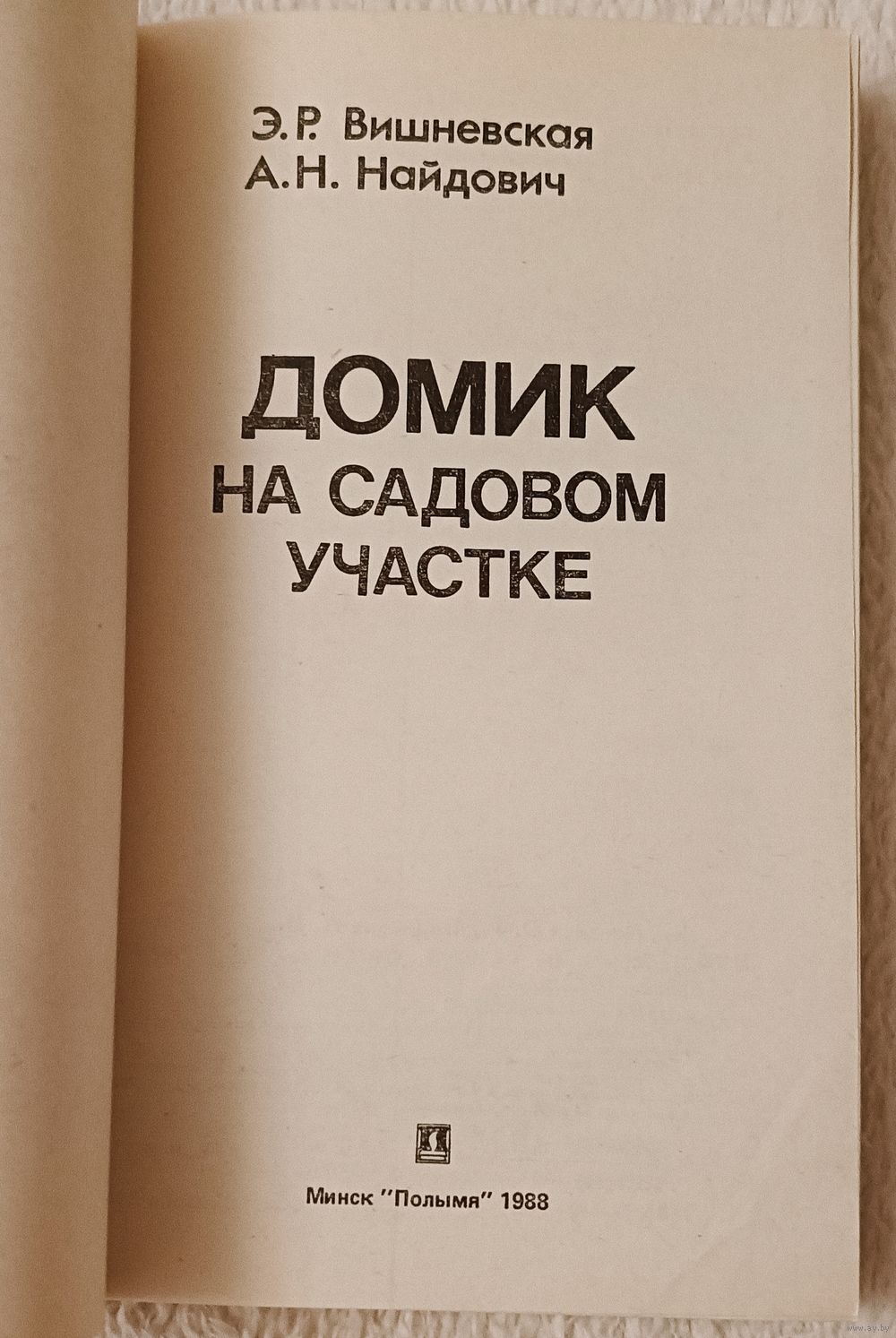 Вишневская Э. Р., Найдович А. Н. Домик на садовом участке. — Мн.: Полымя, 1988.- 272 с.: ил., мягкий переплёт, обычный формат.