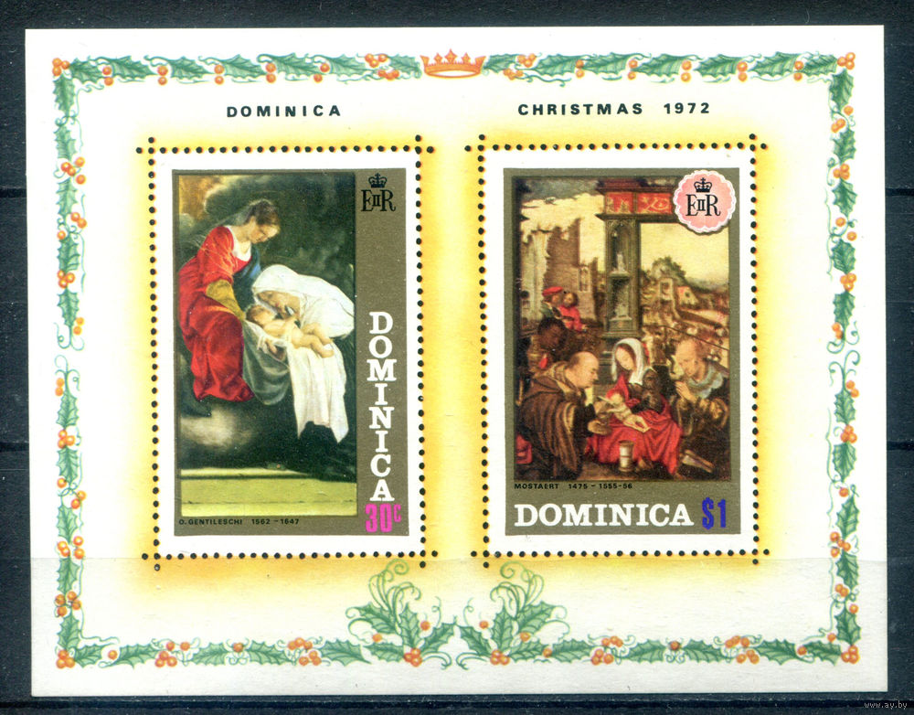Доминика - 1972г. - Рождество, картины - 1 блок - полная серия, MH [Mi bl. 16]. #4-B6-120-KS-4