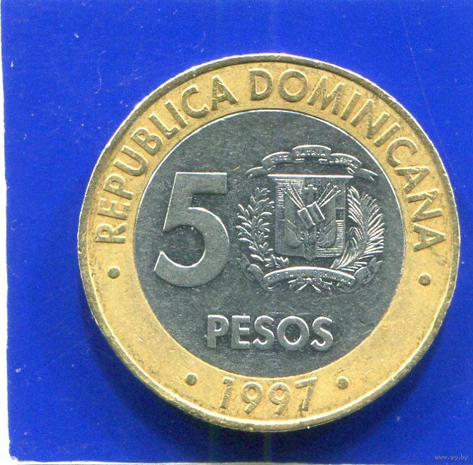 Доминиканская Республика 5 песо 1997 , биметалл