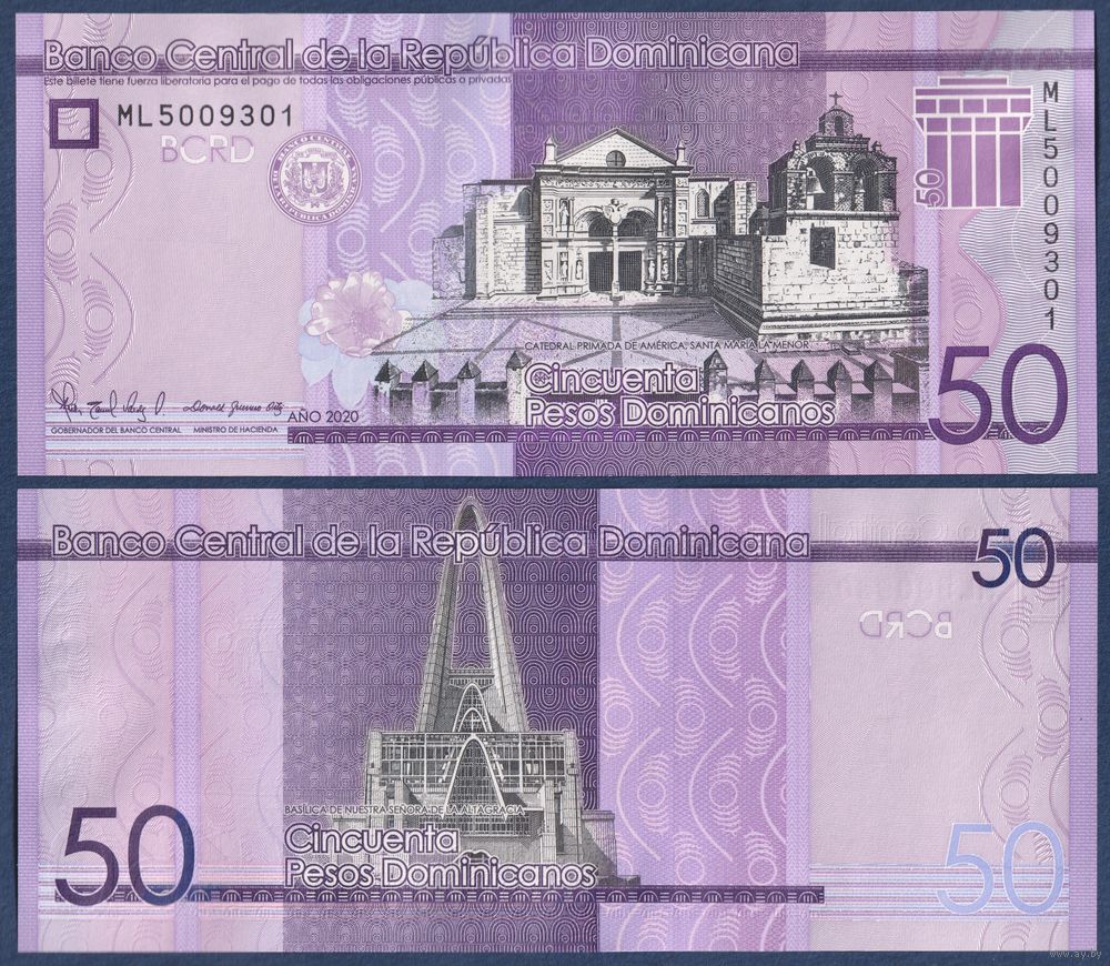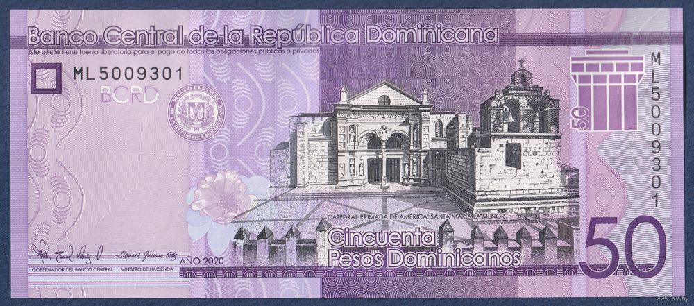 Доминиканская Республика (Доминикана), 50 песо 2020 г, P-189 (ML, собор Санта-Мария-ла-Менор в Санто-Доминго), UNC