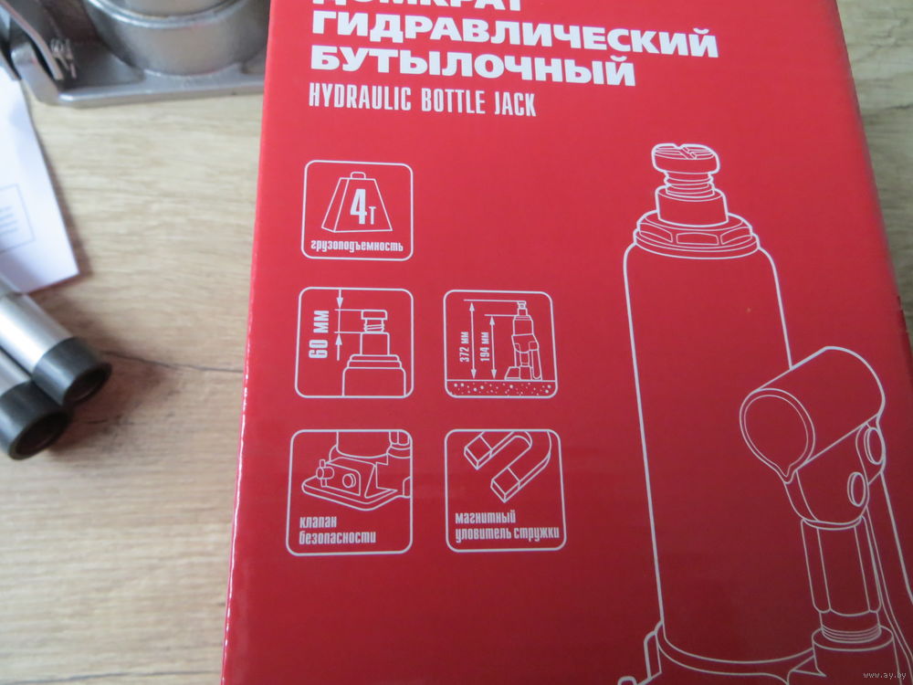 Домкрат гидравлический бутылочный Matrix 50763 предназначен для поднятия грузов весом до 4 т на высоту 194-372 мм.