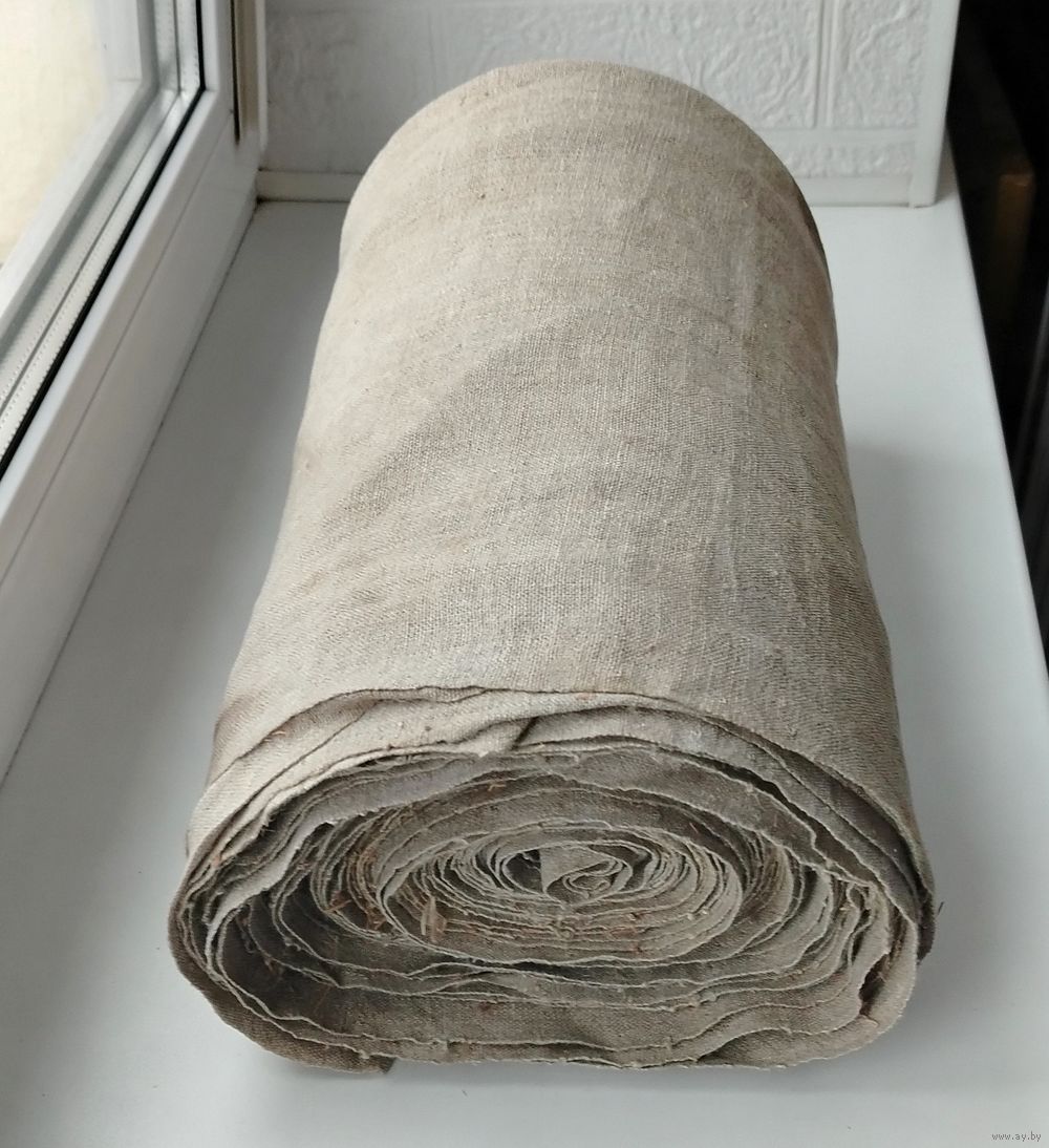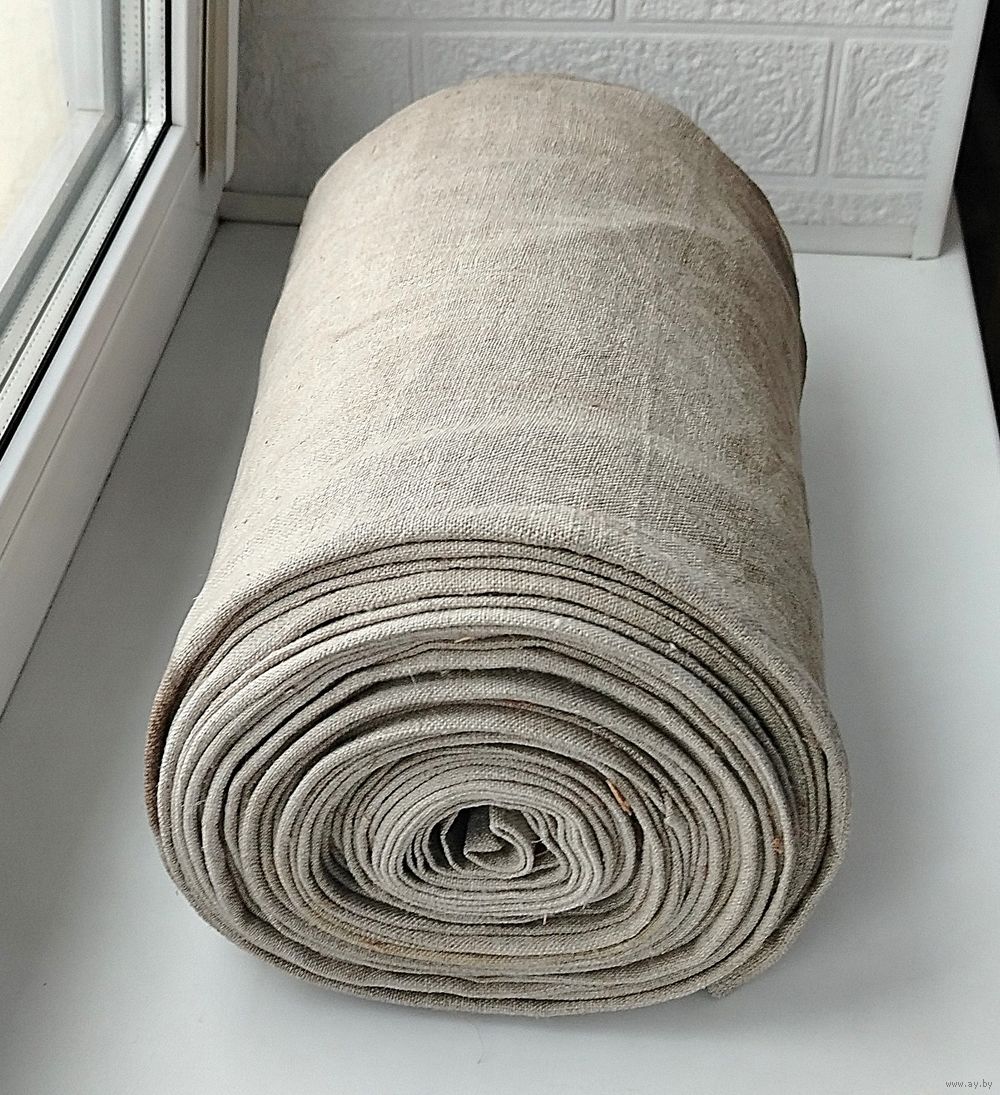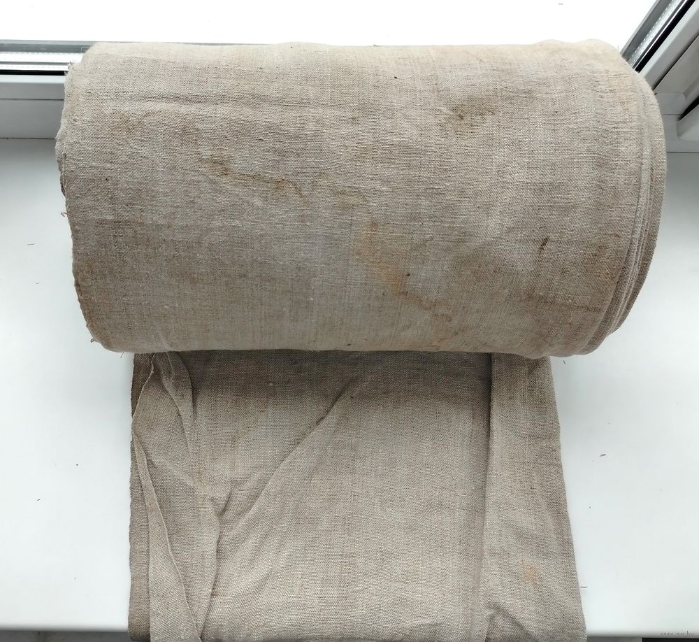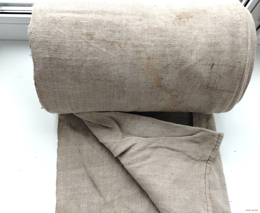 Лён. Длина 13.5 м. Ширина 64 см. Пятна. На ткани мелкие соломинки.