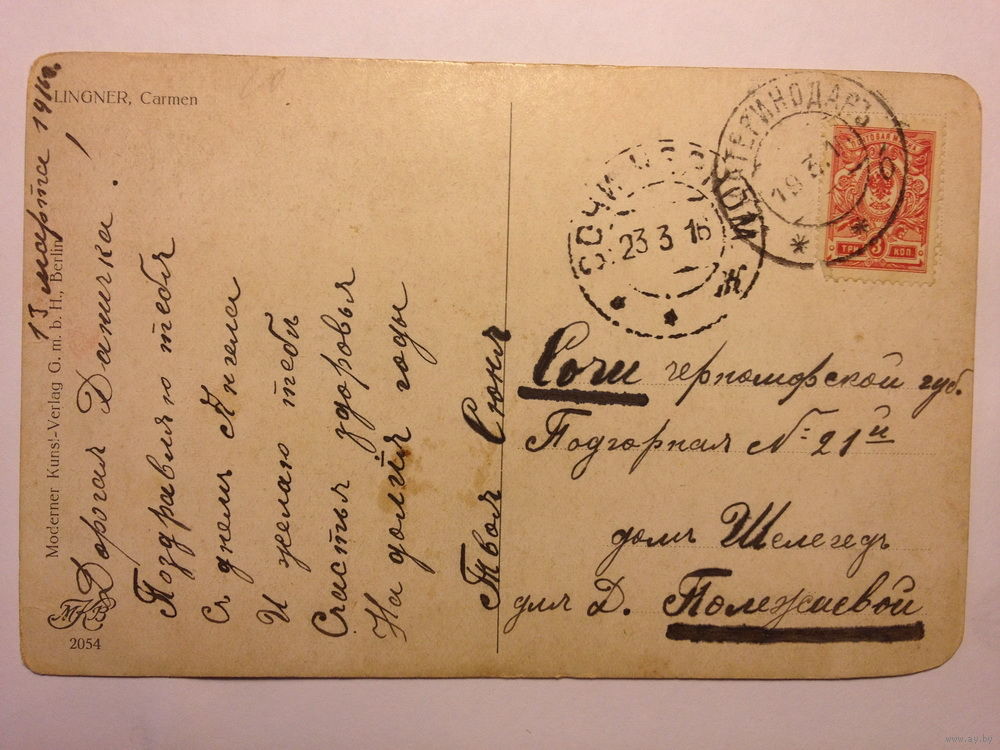 Открытка M.M.Vienne Munk 463 подписана 1914 г..
