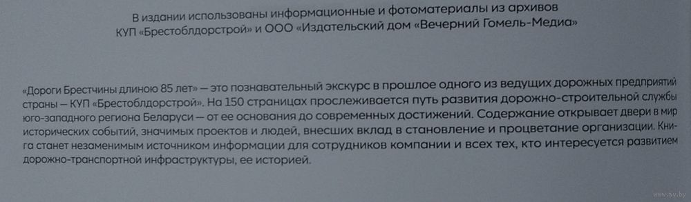 Дороги Брестчины длиною 85 лет!, 1939-2024: КУП "Брестоблдорстрой". Составители: О. А. Коноваленко, Е. О. Лагунова. - Гомель : Вечерний Гомель. Медиа, 2024 г. 151 с. Твердый переплет. Увел. формат