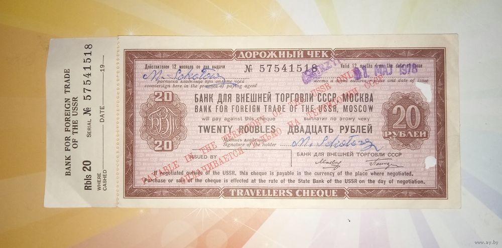 Дорожный чек 20 рублей