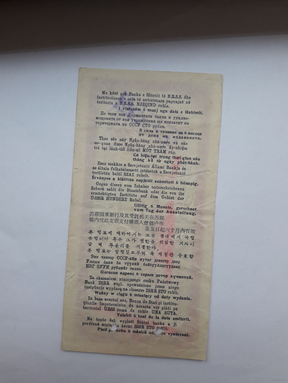 Дорожный чек Госбанка СССР 1961 ( Свешников/Носко 11 яз)
