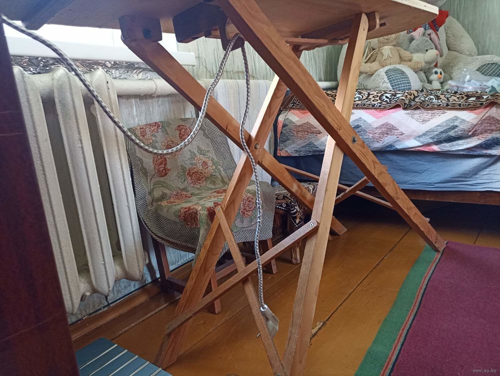 Отличный вариант для глажки. Во первых надёжная и устойчивая конструкция. Во вторых есть всё необходимое - крючки, вешалки, подставки, дополнительно доска для брюк и рукавов. Конечно не презентабельный вид, но перешить чехол дело 10 минут. Размеры 135см с подставкой, 116 на 35см сама доска. Высота ГОСТ стандарт 80 см..