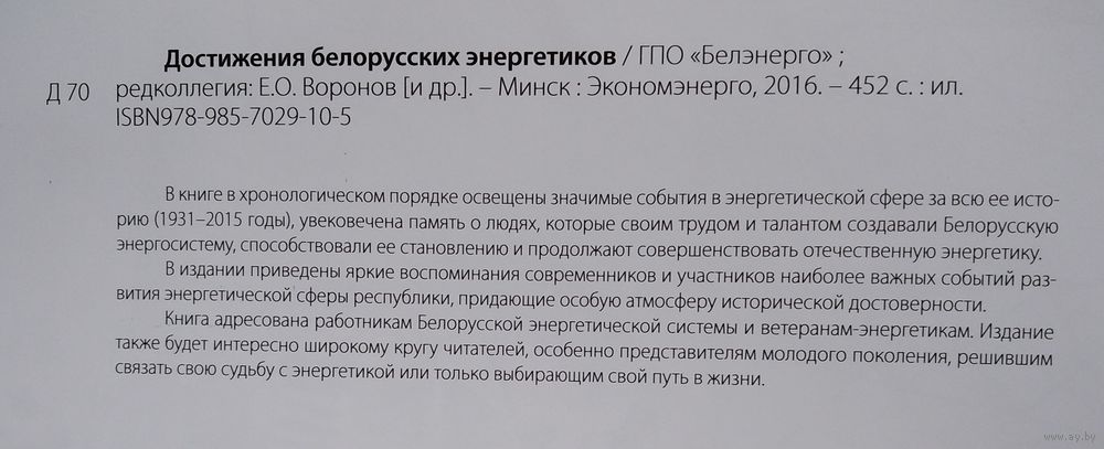 Достижения белорусских энергетиков. 1931-2015: к 85-летию отечественной энергетики. "Белэнерго", государственное производственное объединение электроэнергетики; Сост. С.Д. Варламов, Н.В. Федосеенко, О.В. Гончар, А.В. Никитина. Минск: Экономэнерго, 2016 г. 451 с. Твердый переплет. Энциклопедический формат.