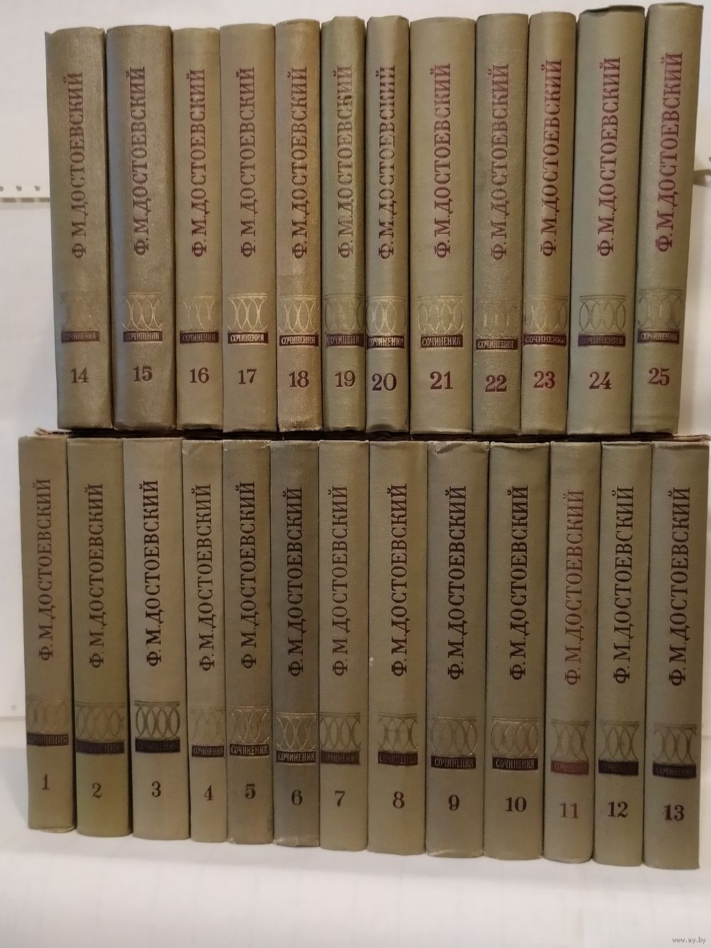 Содержание томов: 1. Бедные люди. Повести и рассказы. 1846-1847. 2. Повести и рассказы. 1848-1859. 3. Село Степанчиково и его обитатели. Униженные и оскорбленные. 4. Записки из Мертвого дома. 5. Повести и рассказы (1862-1866). Игрок (роман). 6. Преступление и наказание. 7. Преступление и наказание. Рукописные редакции. 8. Идиот. 9. Идиот. Рукописные редакции. Вечный муж. Наброски 1867-1870. 10. Бесы (роман). 11. Бесы: Глава `У Тихона`. Рукописные редакции. 12. Бесы. Рукописные редакции. Наброски 1870-1872. 13. Подросток (роман). 14. Братья Карамазовы. Книги I-X. 15. Братья Карамазовы. Книги XI-XII. Эпилог. Рукописные редакции. 16. Подросток: Рукописные редакции. 17. Подросток: Рукописные редакции. Наброски 1874 – 1879. 18. Статьи и заметки. 1845-1861. 19. Статьи и заметки. 1861. 20. Статьи и заметки. 1862-1865. 21. Дневник писателя. 1873. Статьи и заметки. 1873-1878. 22. Дневник писателя за 1876 год. Январь-апрель. 23. Дневник писателя за 1876 год. Май-октябрь. 24. Дневник писателя за 1876 год. Ноябрь-декабрь. 25. Дневник писателя за 1877 год. Январь-август.