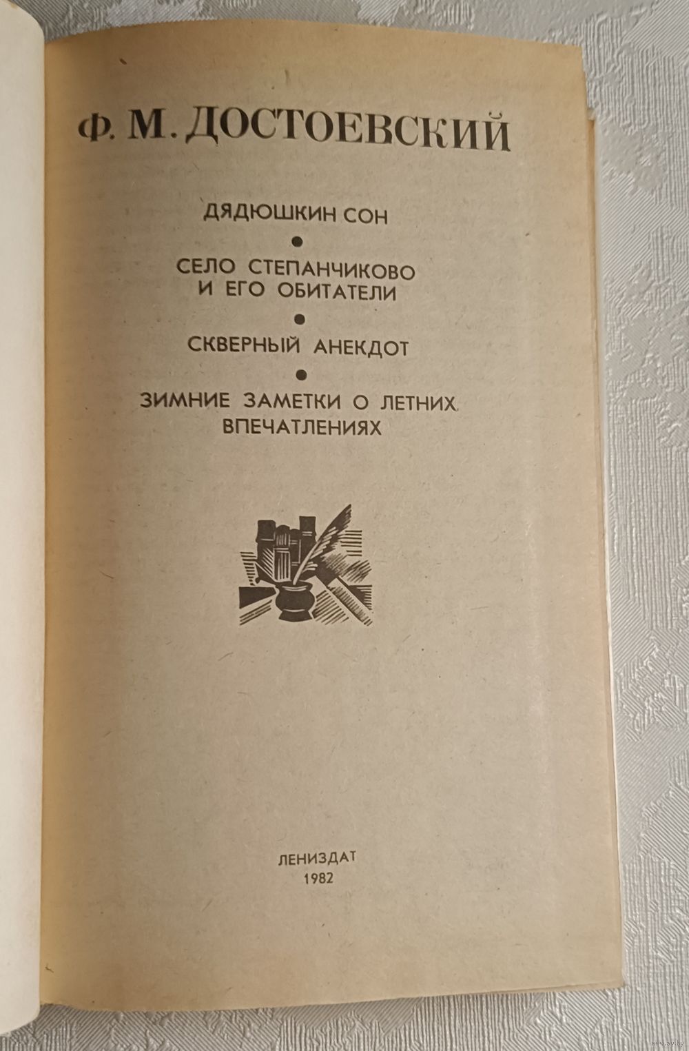 Достоевский Федор. Дядюшкин сон; Село Степанчиково и его обитатели; Скверный анекдот; Зимние заметки о летних впечатлениях. — Л.: Лениздат, 1982. 443 с., ил.