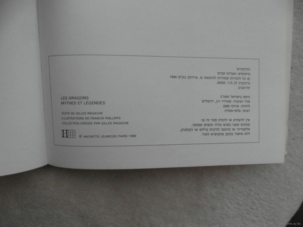 Драконы. Мифы и легенды. Les dragons. Mythes et légendes. 1989 г. Книга на иврите.
