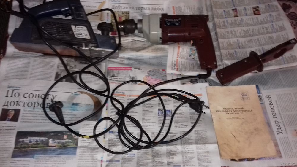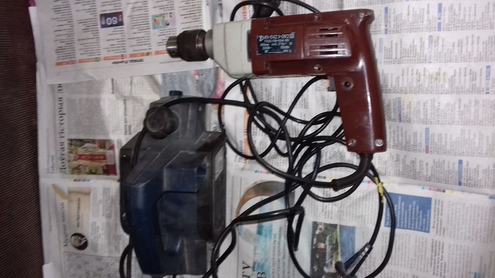 Дрель почти новая . Пытались поменять щетки но что то не получилось и после этого не работает не хватает несколько винтиков. Электрорубанок включается но слышно что нужна замена щеток по моему мнению. Остальное состояние на фото.