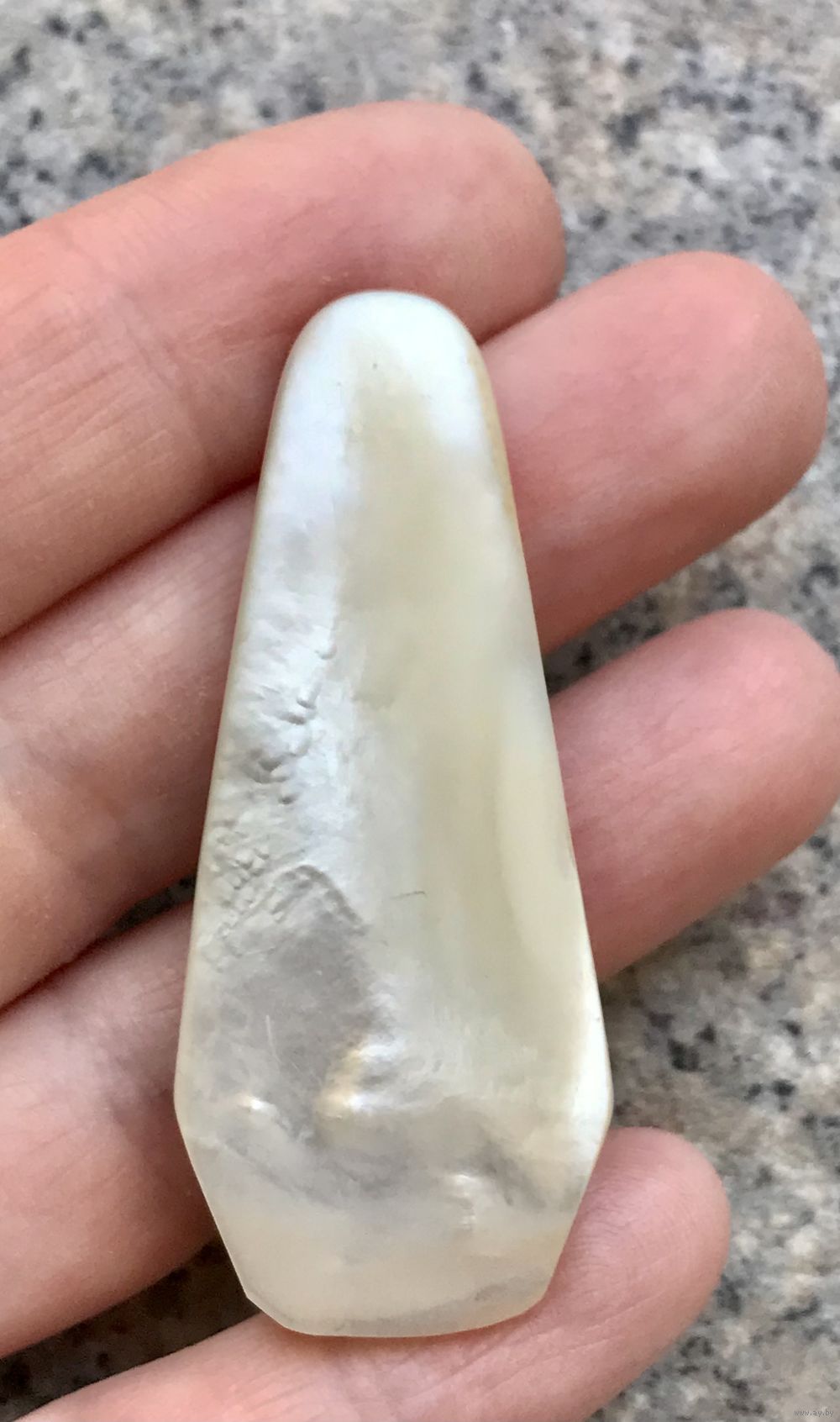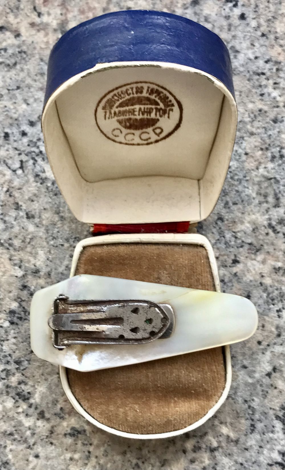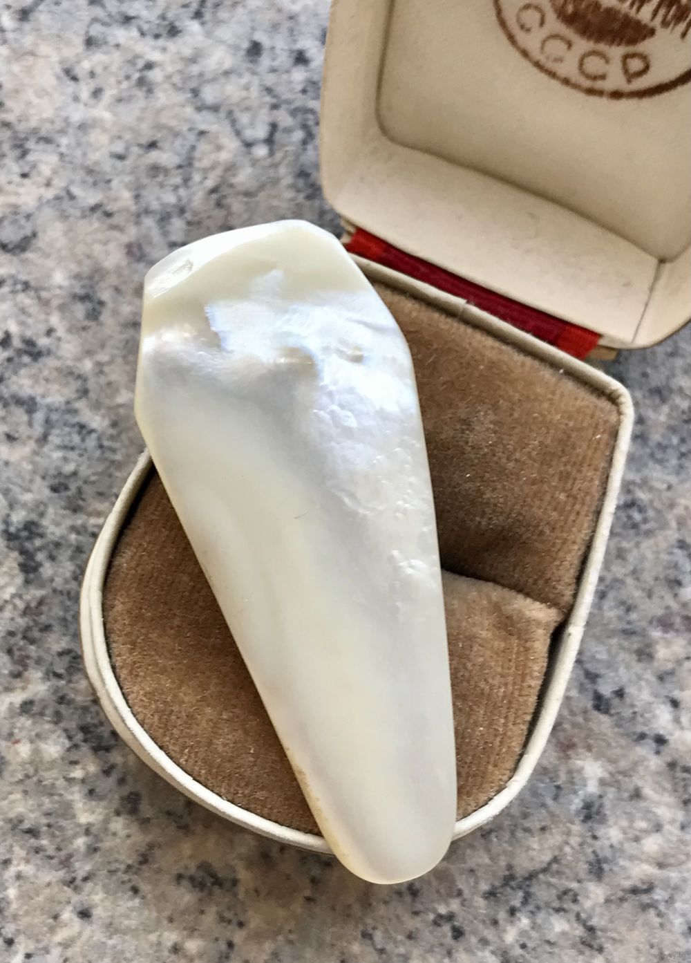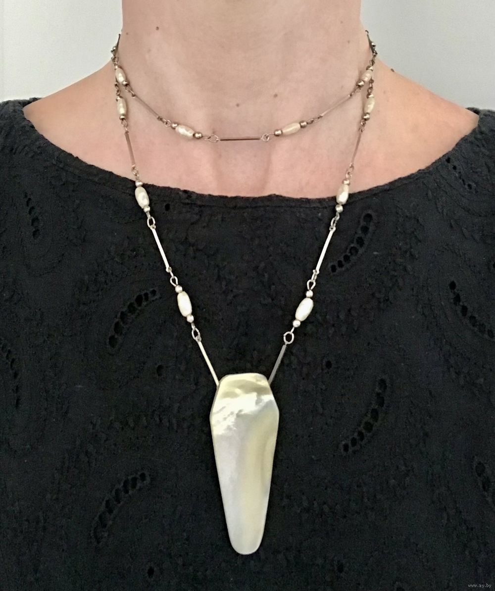 Крупный винтажный дресс-клип из плотной пластины перламутра. На перламутре имеются неровности и шероховатости естественного происхождения. Размер 5,3х2,3см. Состояние хорошее. Можно носить как кулон.