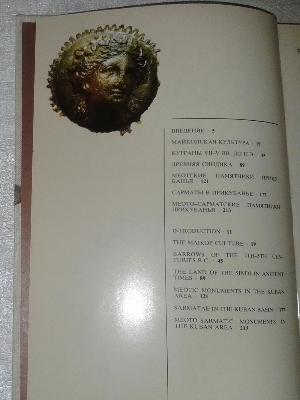 Настоящее издание - книга-альбом золотых художественных изделий древнейших эпох - с III тысячелетия до н.э., хранящихся в крупнейшем музее нашей страны - Государственном Эрмитаже, в Государственном историческом музее (Москва), Государственном музее искусств народов Востока (Москва), Краснодарском государственном историко-археологическом музее-заповеднике, а также Адыгейском областном краеведческом музее. Вещи эти найдены при раскопках древних курганов на Кубани. Многие из них являются подлинными образцами высокого искусства, уникальны по своей художественной и исторической значимости, другие - массовая ремесленная продукция.