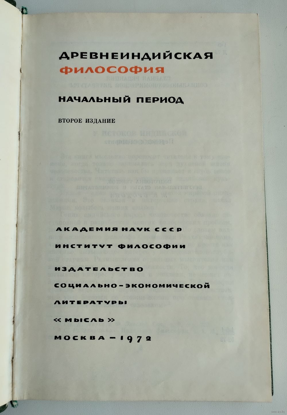 Древнеиндийская философия. Начальный период. Серия: Философское наследие. М.: Мысль, 1972г., 272с. Твёрдый переплёт. Обычный формат.