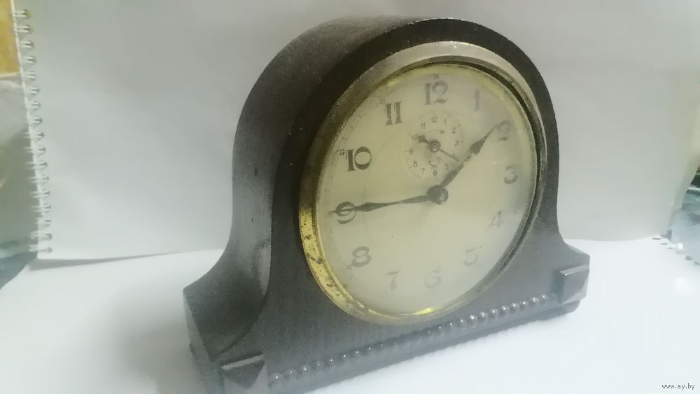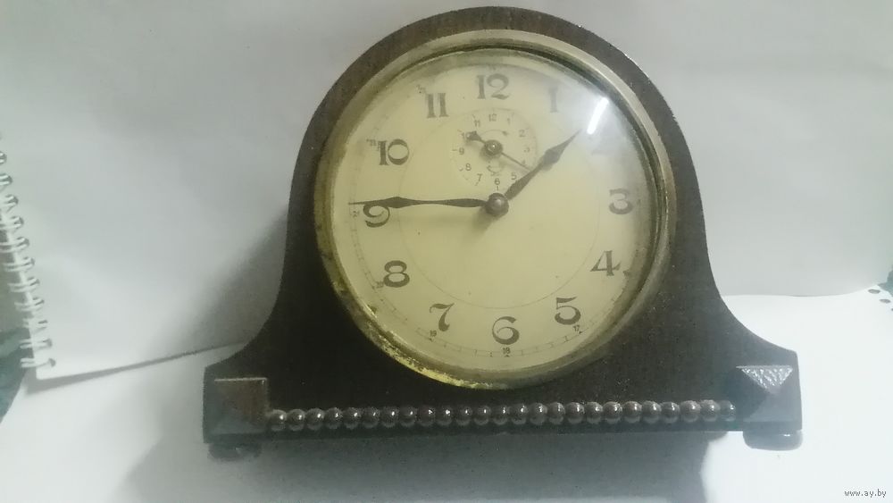 Древний будильник в деревянном корпусе. Высота - 14см , ширина - 18 см , глубина - 5,5 см . Механизм обслужен , все функции работают .