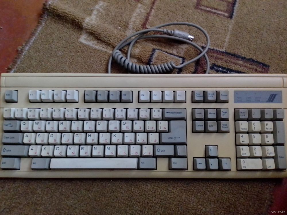 Древняя клавиатура под разъем DIN-5, примерно 1992 года выпуска, полностью рабочая, хорошие, четкие нажатия, все клавиши рабочие, надписи без повреждений, светодиоды горят, надписи символов не стерлись и хорошо видны (на фото не очень видно, на самом деле надписи как новые) ремонтировалась, не отбеливалась. Клавиатуру можно подключить к современному компьютеру в разъем ps/2 через пассивный переходник. Качество пластика отличное, клавиши, резиновые ножки в отличном состоянии - прослужит долго.