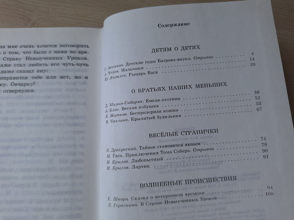 | Автор | Шварц, Гераскина, Крылов, Яковлев, Блок, Драгунский, Твен, Чехов, Житков, Чаплина, Твен, Мамин-Сибиряк, Аксаков |