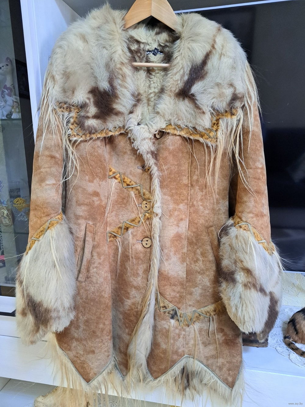 Дубленка стильная с толстым искусств.мехом внутри, р.44-46, б.у, очень теплая и красивая, в единственном экземпляре.