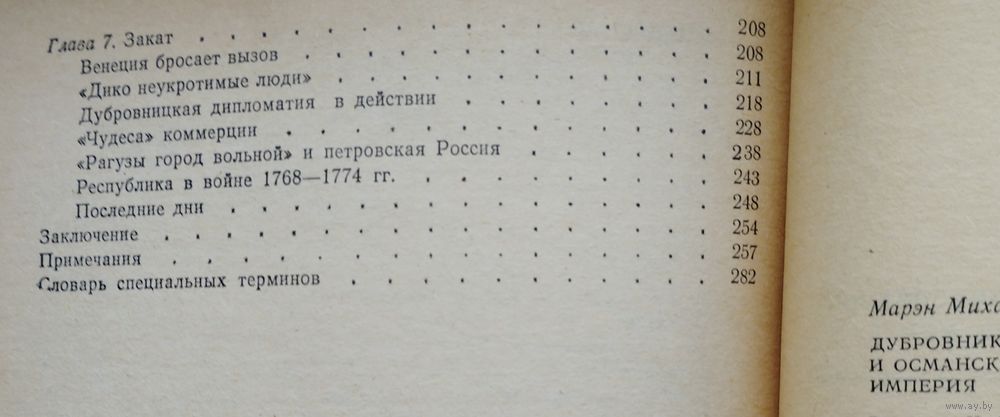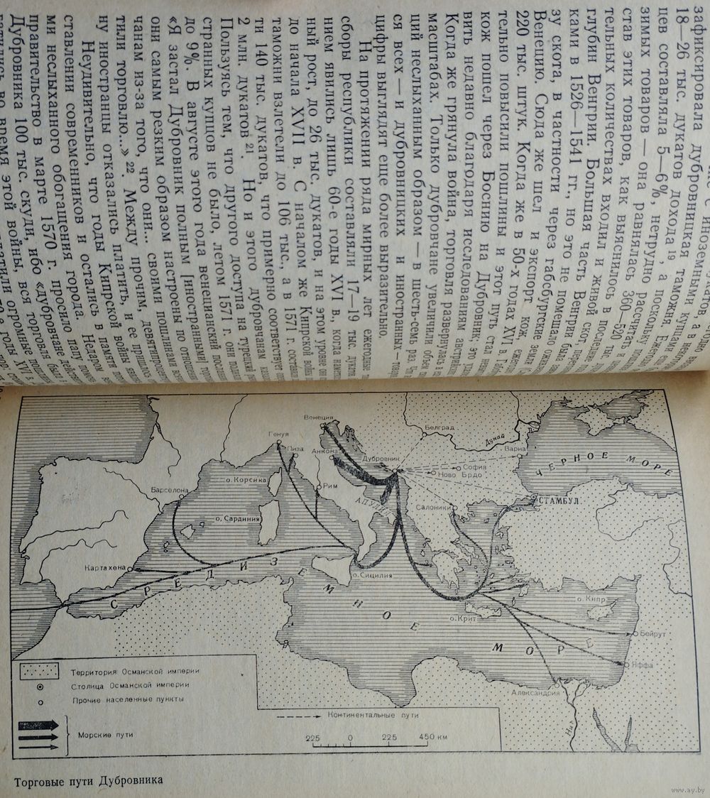 Большой формат. Тираж 10000 экз. 288 стр. Монография доктора исторических наук проф. М. М. Фрейденберга (Калининский университет) явилась итогом его многолетнего изучения средневековой истории далматинских городов и еще одним свидетельством интереса советских исследователей к истории города в системе феодализма. Автор поставил перед собой задачу - рассказать о Дубровнике, "его исторических судьбах и о том, как сложились его отношения с турецким государством" (с. 6). Это обусловило широту хронологических и географических рамок работы. В центре внимания М. М. Фрейденберга - тысячелетняя история города с момента его основания и до потери им самостоятельности в начале XIX века. В монографии прослеживается тесная взаимосвязь Дубровника с боснийскими, сербскими и болгарскими землями, сначала независимыми, затем оказавшимися под игом Османской империи, раскрыт драматизм положения свободного Дубровника, окруженного турецкими владениями. Особенностью монографии являются яркость и выразительность повествования об исторических событиях, а литературные достоинства книги приближают ее к художественному произведению. Введение начинается с живого, эмоционального описания землетрясения 1667 г. в Дубровнике, когда погибло большое число жителей, а от города остались "горы камня и обломков". Но Дубровник постепенно возродился после этой катастрофы. Из источников М. М. Фрейденберг называет лишь главные - статут Дубровника, нотариальные акты, свидетельства современников об отдельных событиях. Историография же представлена по-иному: во-первых, удивляет обилие новейшей советской и зарубежной, в основном югославской, научной литературы, которая была привлечена автором, и, во-вторых, выводы и наблюдения большинства современных исследователей вошли составной частью в книгу; это делает ее своеобразным срезом историографии по горизонтали, отражением того уровня знаний по средневековой истории Дубровника и Далмации, который достигнут в настоящее время.