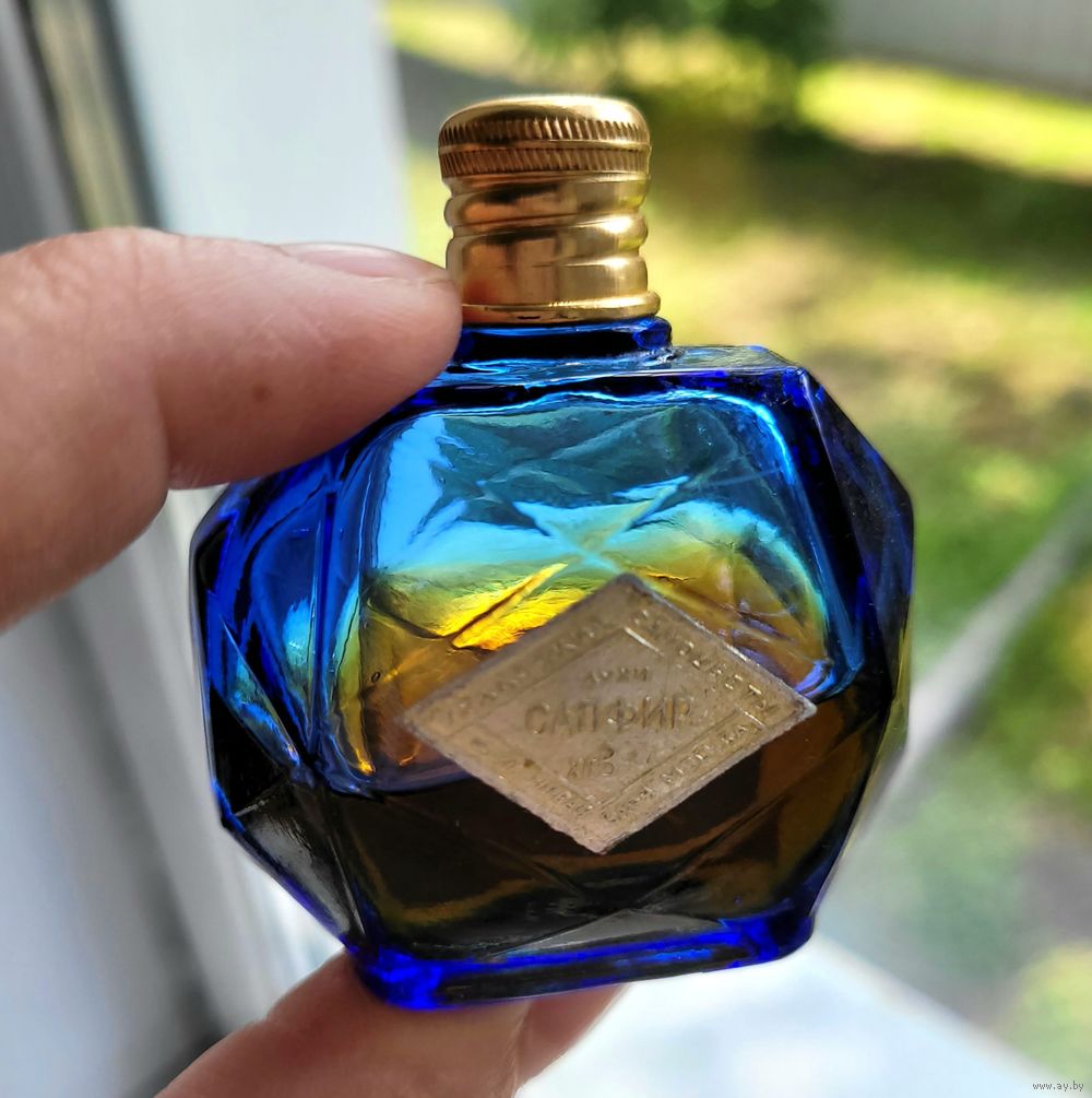 Духи "Сапфир", выпускались с 1967 года, входили в парфюмерный набор "Малахитовая шкатулка" фабрики "Новая Заря", г. Москва.