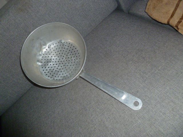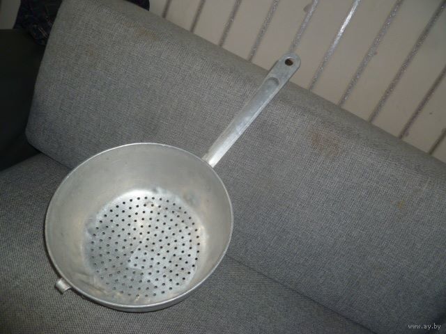 Дуршлаг алюминиевый с ручкой(21 см.), СССР, диаметр 21 см,высота 10 см.