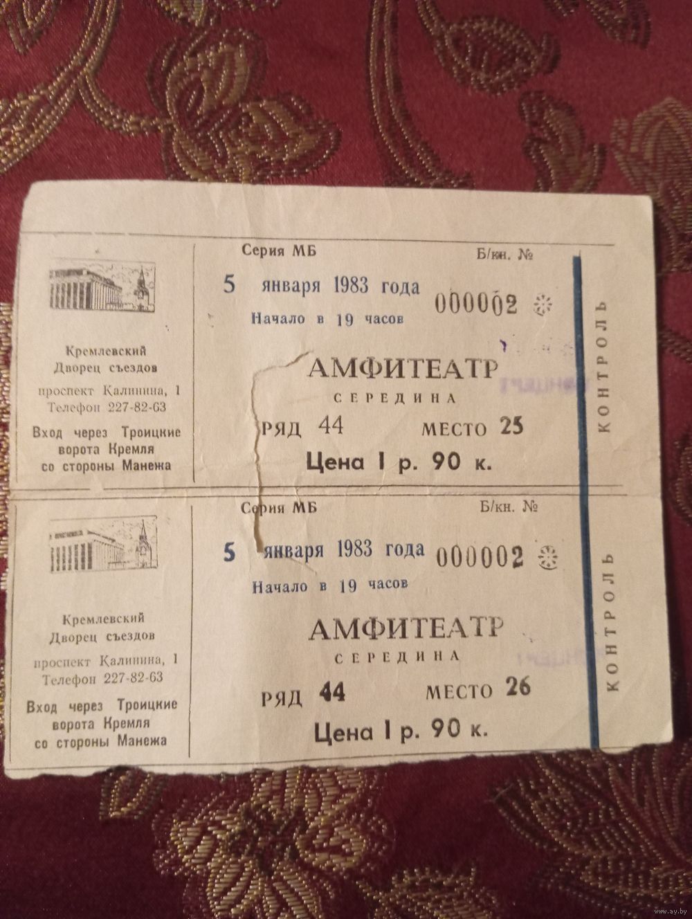 два билета на одно мероприятие в Кремлевском Дворце съездов, которое состоялось 5 января 1983 года в 19:00.
