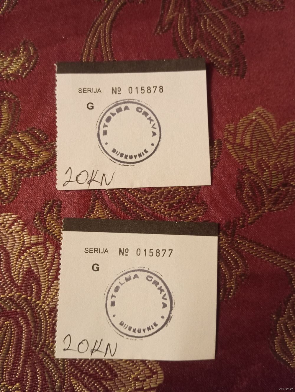 два билета за 20 хорватских кун (HRK).