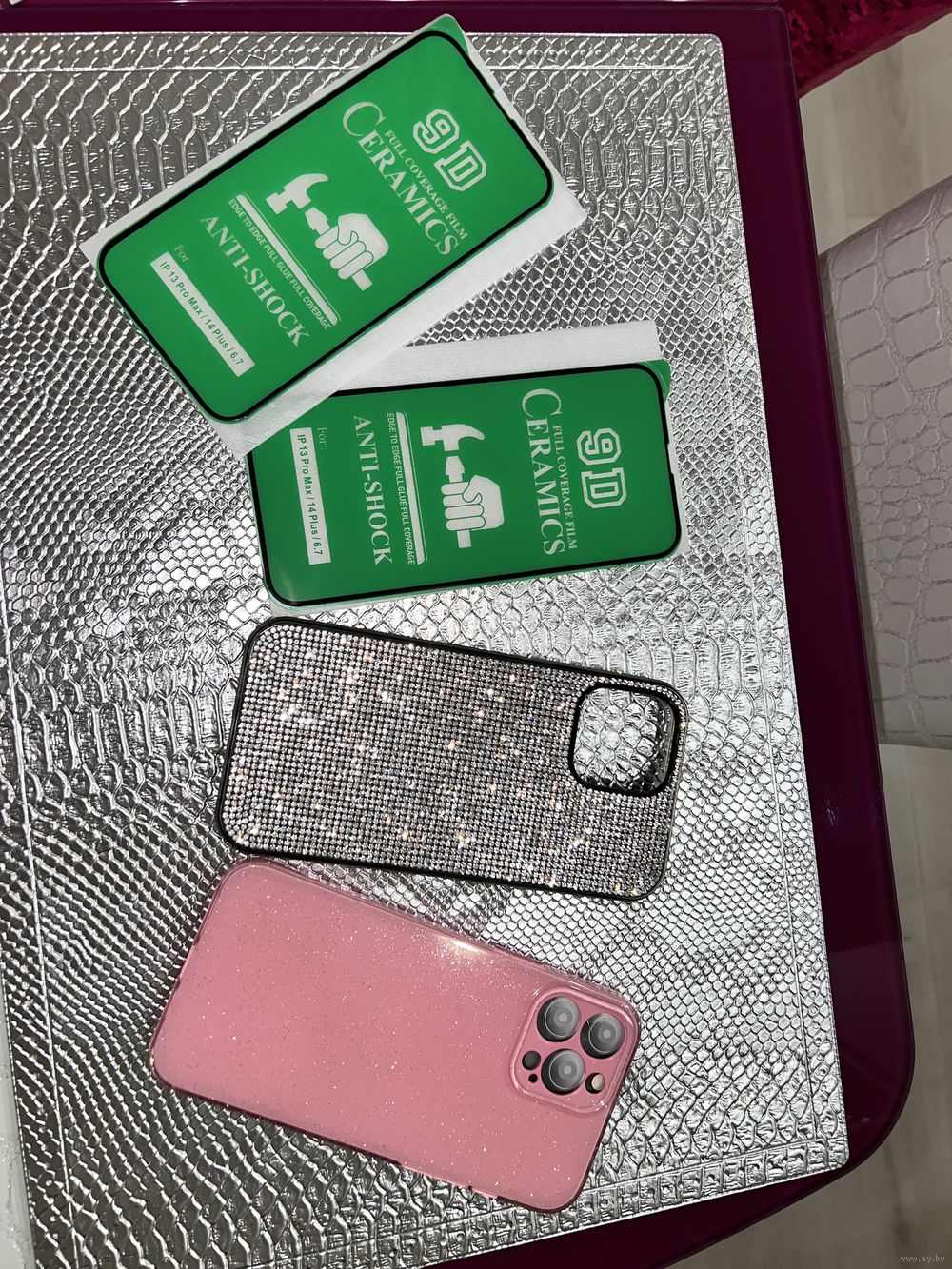Два чехла+2 стекла за 20р лотом. Отдельно не продаю. Розовый чехол новый, со стразами - немного б\у.