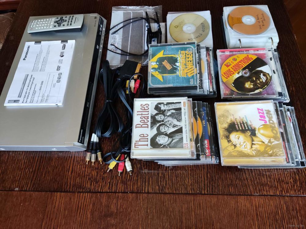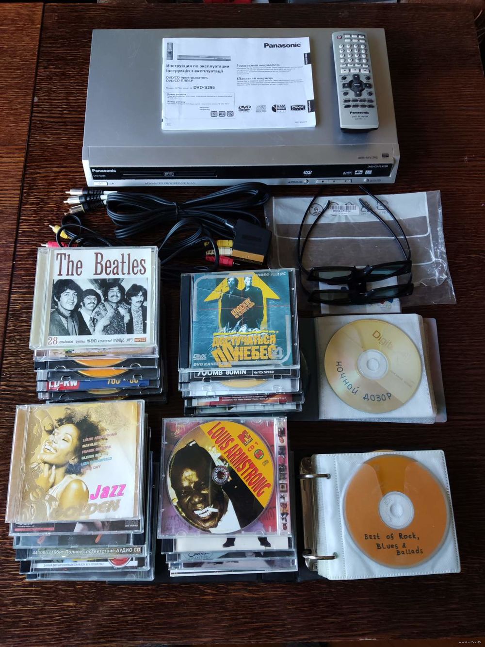 DVD/CD-плеер Panasonic DVD-S295 с возможностью проигрывания дисков любых форматов, Состояние нового. Всё работает. В комплекте оригинальный пульт, соединительные кабели, инструкция, пара очков для просмотра DVD в формате 3D, а также подборка видео и аудио дисков 62 шт!
