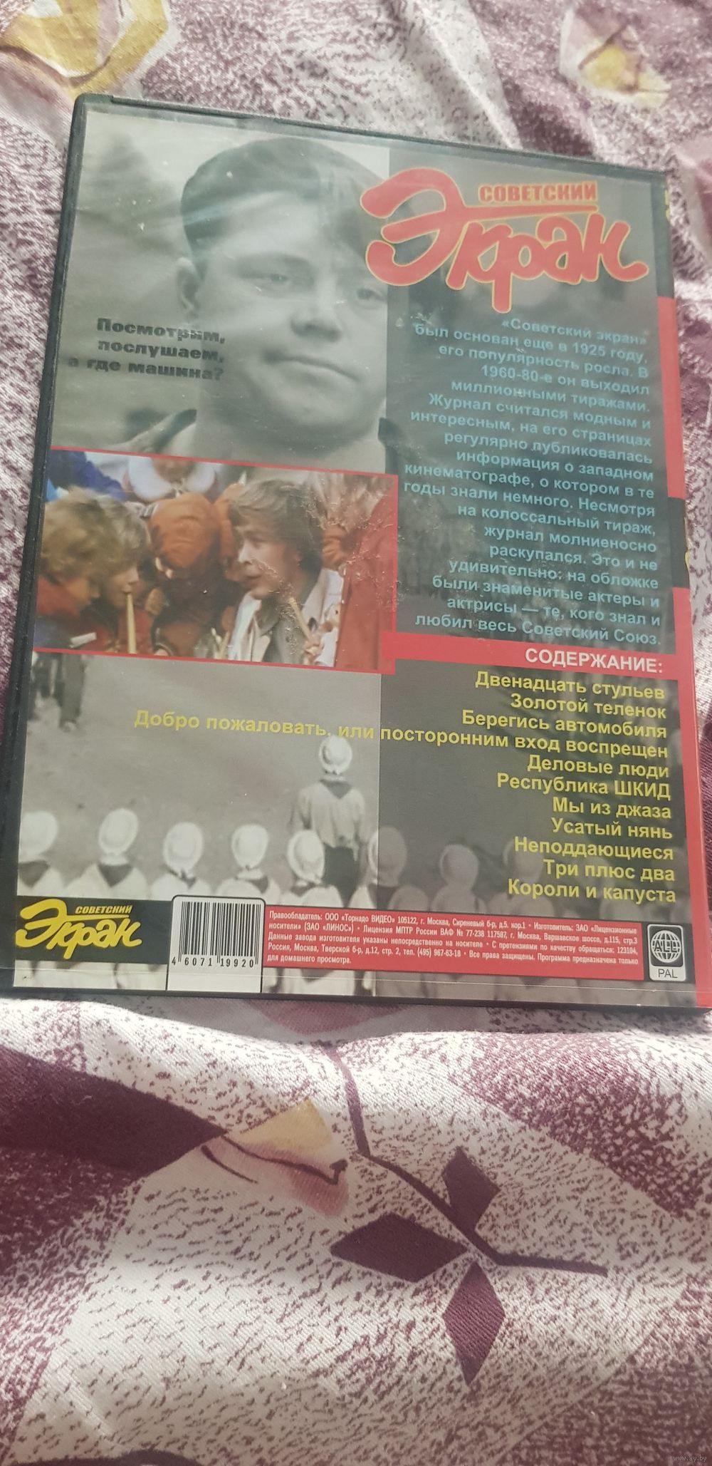 DVD-Диск "Советский Экран. Тематические Комедии. Выпуск 07" Нестареющие Фильмы: 12 Стульев, Золтой Теленок, Берегись Автомобиля, Добро пожаловать или посторонним вхтд воспрещен, Деловые Люди, Республика ШКИД, Мы Из Джаза, Усатый Нянь, Неподдающиеся, Три плюс Два, Короли и капуста.Если вы в чем-то не уверены и сомневаетесь пожалуйста воздержитесь от покупки лота. ПОЧТОЙ НЕ ВЫСЫЛАЮ Платежи на Баланс Телефона и На Карту Для Оплаты не Принимаю В ВИДЕ ОТСУТСТВИИ ПЛАТНОЙ КАРТЫ. Условий Оплаты Только Наличные, Самовывоз и Личная Встреча ТОЛЬКО С МИНЧАНИНОМ СВЯЗЫВАЮСЬ в любые договорные дни в Минске. Бываю в Цнянке, Зацень и Якубовичи (с 11:00 до 20:00 часов). Обязательно в Крайнем Случай Звоните Интернет Только Дома Возможно Буду Отсутствовать дома Мой Телефон указан слева в "Контактном Данном" (с 10:00 до 21:00 часов). ПОСЛЕ НАЖАТИЯ ПОКУПКИ ЛОТА ПИШИТЕ ПОЖАЛУЙСТА НА ЭЛЕКТРОННЫЙ АДРЕС ВИБЕРОМ И ДРУГИМИ СЕТЯМИ НЕ ПОЛЬЗУЮСЬ В КОММЕНТАРИЯХ ОСТАВЛЯТЬ НЕЛЬЗЯ. УБЕДИТЕЛЬНАЯ ПРОСЬБА НЕ ЗАДАВАЙТЕ ГЛУПЫЕ ВОПРОСЫ.