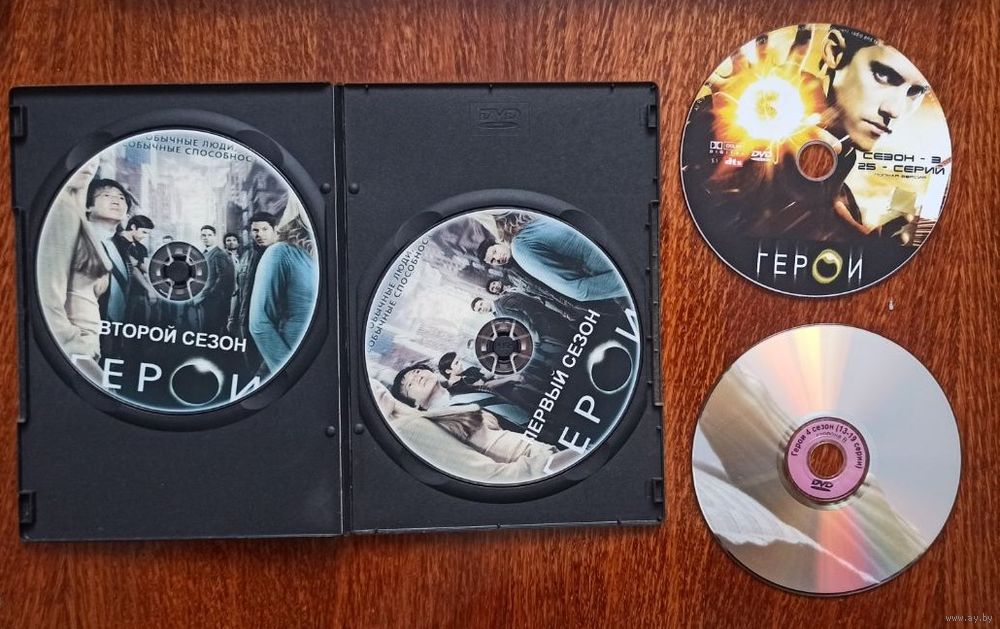 В одной коробке: 4 диска (3 - 1 сторона, 1 - 2 стороны), состояние отличное, без повреждений. Раньше 3 и 4 сезоны шли со своими коробками, сократил место в фильмотеке, переложил в одну коробку.