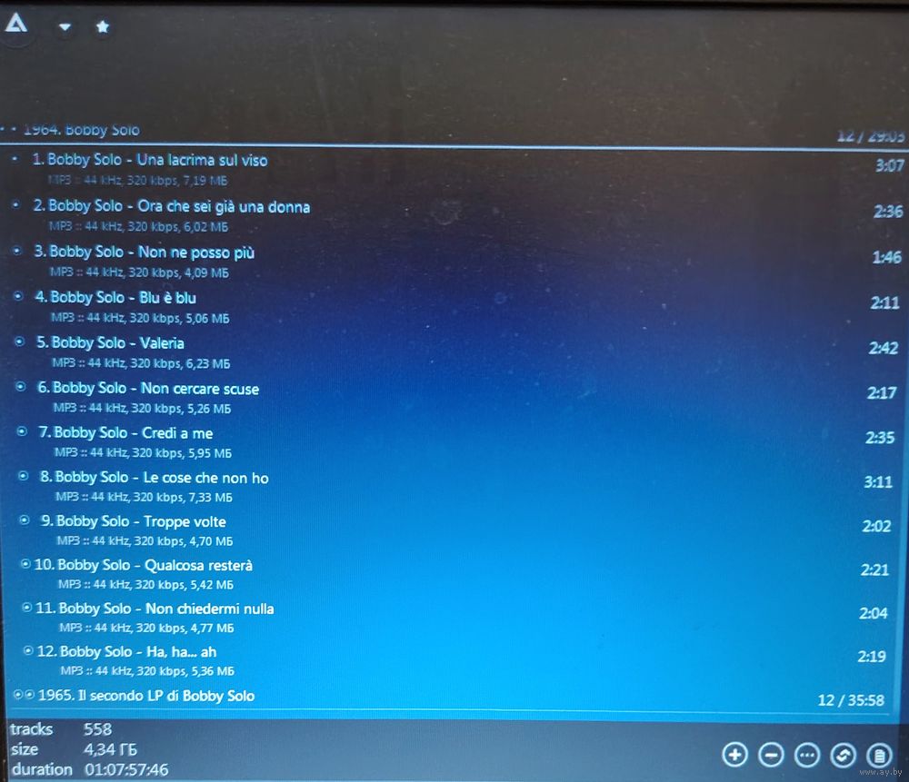 При наличии таковых в треки вшиты обложки альбомов. Качество 320 kbps (если напротив названия альбома не указано иное). Покупателям, совершившим покупки на сумму от 50 до 100 руб. скидка 5%, от 101 до 200 руб. - 10%, более 201 руб. - 20%. Заказы на сумму менее 5 руб. с 2024 г. не высылаю. Ознакомиться с творчеством можно здесь: https://musify.club/artist/bobby-solo-425320/discography