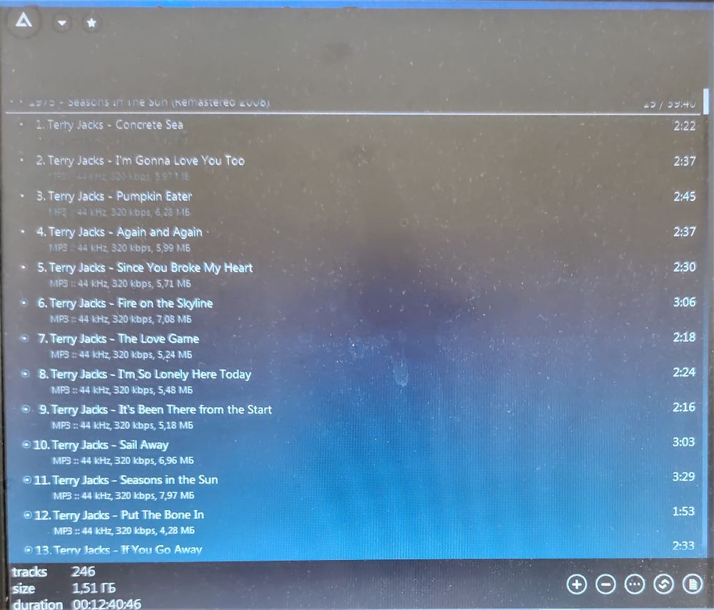 Контент см. фото конверта и скриншотов с экрана. При наличии таковых в треки вшиты обложки альбомов. Качество 320 kbps (если напротив названия альбома не указано иное). Покупателям, совершившим покупки на сумму от 50 до 100 руб. скидка 5%, от 101 до 200 руб. - 10%, более 201 руб. - 20%. Заказы на сумму менее 5 руб. с 2024 г. не высылаю. Ознакомиться с творчеством можно здесь:https://musify.club/artist/terry-jacks-32423/discography; https://musify.club/artist/the-poppy-family-56828/discography