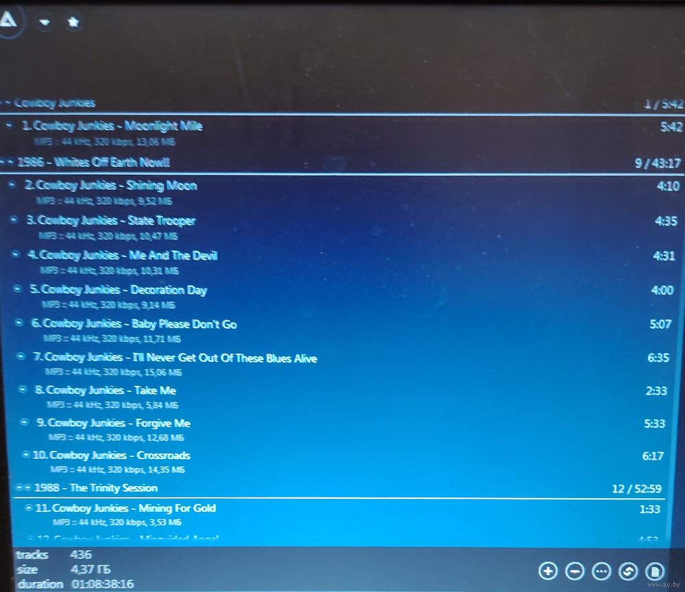 При наличии таковых в треки вшиты обложки альбомов. Качество 320 kbps (если напротив названия альбома не указано иное). Покупателям, совершившим покупки на сумму от 50 до 100 руб. скидка 5%, от 101 до 200 руб. - 10%, более 201 руб. - 20%. Заказы на сумму менее 5 руб. с 2024 г. не высылаю. Ознакомиться с творчеством можно здесь: https://musify.club/artist/cowboy-junkies-22535/discography; https://musify.club/artist/moving-units-4056/discography