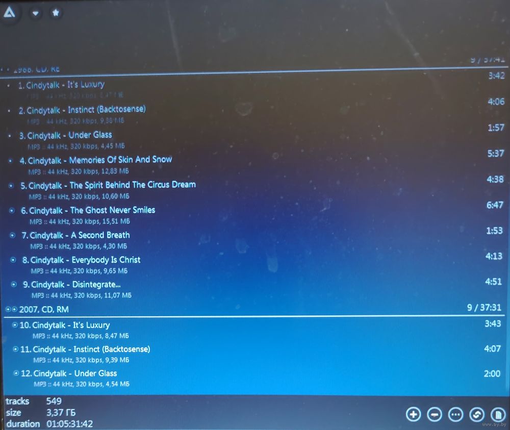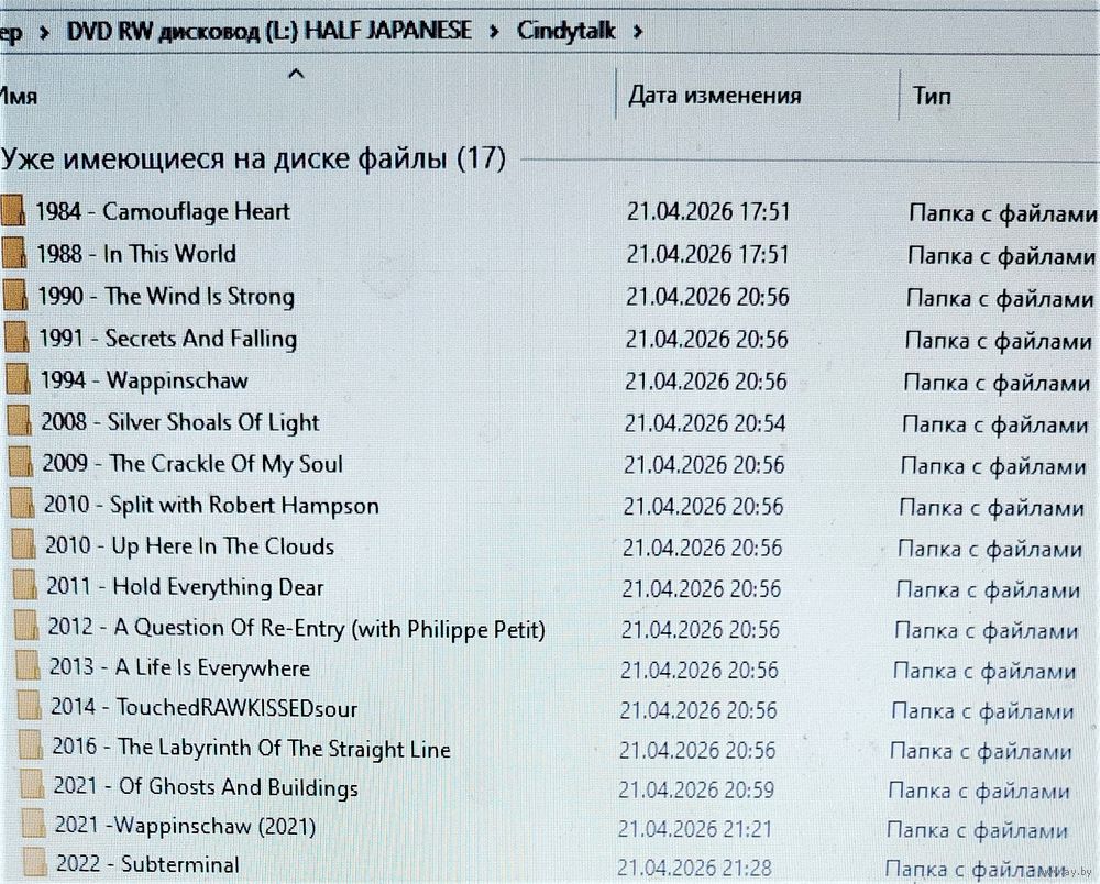 Контент см. фото конверта. При наличии таковых в треки вшиты обложки альбомов. Качество 320 kbps (если напротив названия альбома не указано иное). Покупателям, совершившим покупки на сумму от 50 до 100 руб. скидка 5%, от 101 до 200 руб. - 10%, более 201 руб. - 20%. Заказы на сумму менее 5 руб. с 2024 г. не высылаю. Ознакомиться с творчеством можно здесь: https://musify.club/artist/cindytalk-291562/discography; https://musify.club/artist/half-japanese-195082/discography