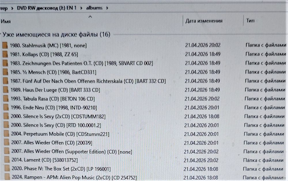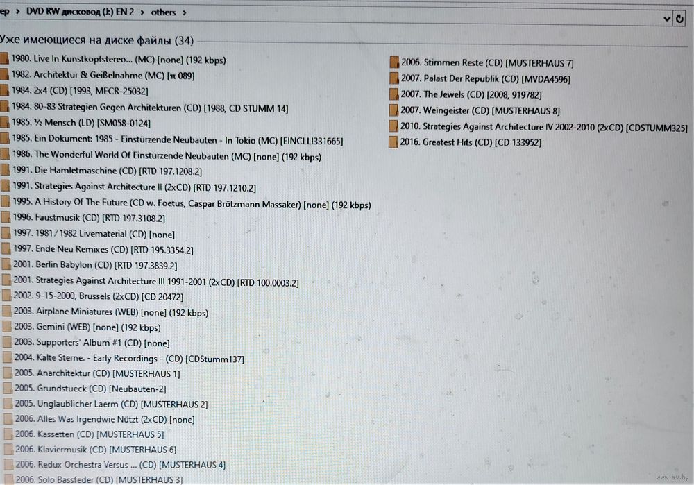 Дискография EINSTURZENDE NEUBAUTEN на 2-x DVD.