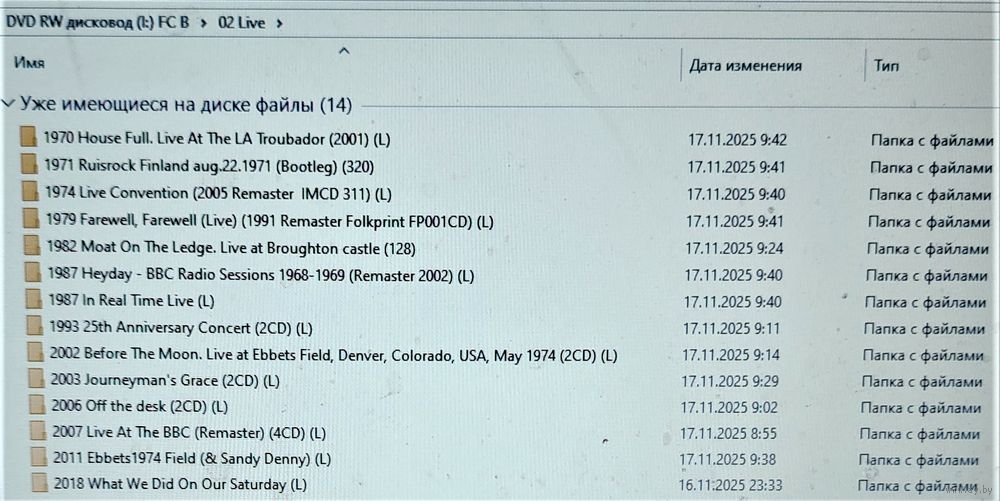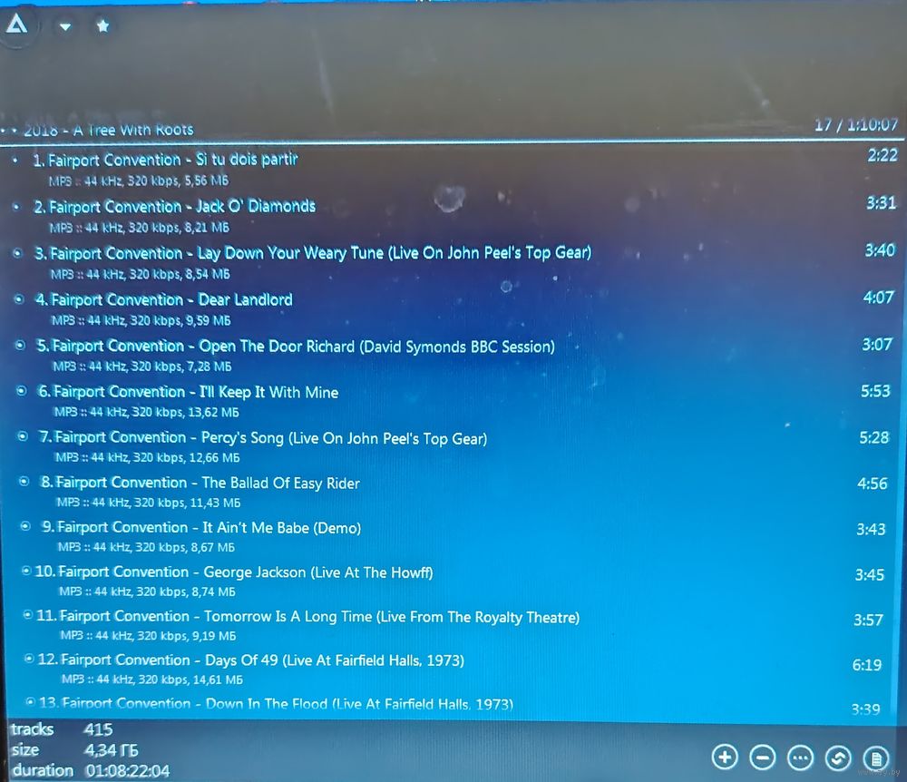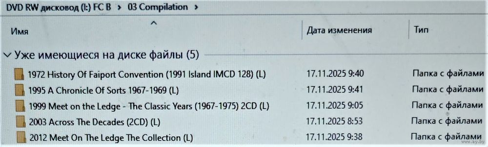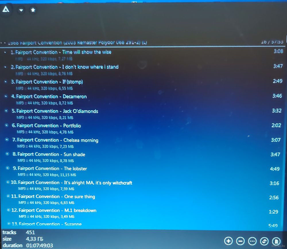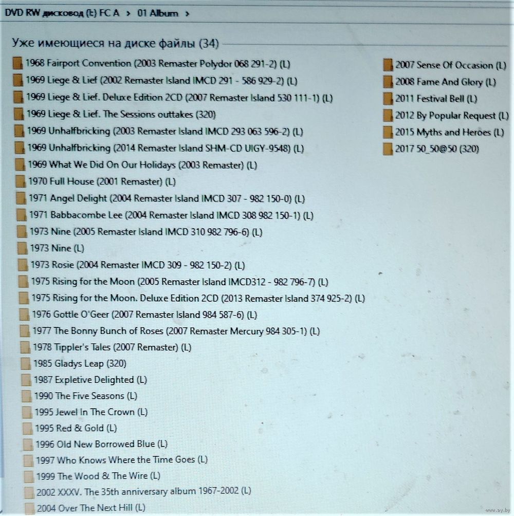 Контент - см. фото конвертов. Скриншоты проверки на считываемость также представлены на фото. Качество 320 kbps (если напротив названия альбома не указано иное). Ознакомиться с творчеством можно здесь: https://musify.club/artist/fairport-convention-41756/discography, а посмотреть интересный ролик об истории группы - здесь: https://www.youtube.com/watch?v=qsr8zBiHIv0&list=RDqsr8zBiHIv0&start_radio=1
