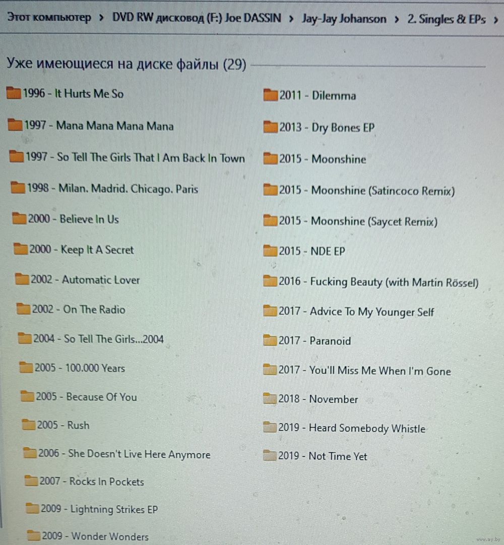 Контент см. фото конверта и скриншотов с экрана. При наличии таковых в треки вшиты обложки альбомов. Качество 320 kbps (если напротив названия альбома не указано иное). Покупателям, совершившим покупки на сумму от 50 до 100 руб. скидка 5%, от 101 до 200 руб. - 10%, более 201 руб. - 20%. Заказы на сумму менее 5 руб. с 2024 г. не высылаю. Ознакомиться с творчеством можно здесь: https://musify.club/artist/jay-jay-johanson-29567/releases