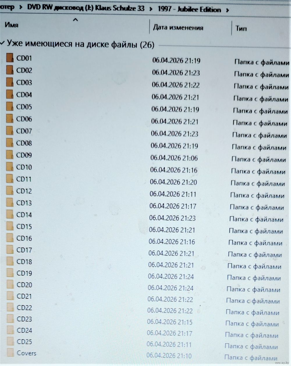 Контент см. фото конверта и скриншотов с экрана. При наличии таковых в треки вшиты обложки альбомов. Качество 320 kbps (если напротив названия альбома не указано иное). Покупателям, совершившим покупки на сумму от 50 до 100 руб. скидка 5%, от 101 до 200 руб. - 10%, более 201 руб. - 20%. Заказы на сумму менее 5 руб. с 2024 г. не высылаю. Ознакомиться с творчеством можно здесь: https://musify.club/artist/klaus-schulze-34881/discography