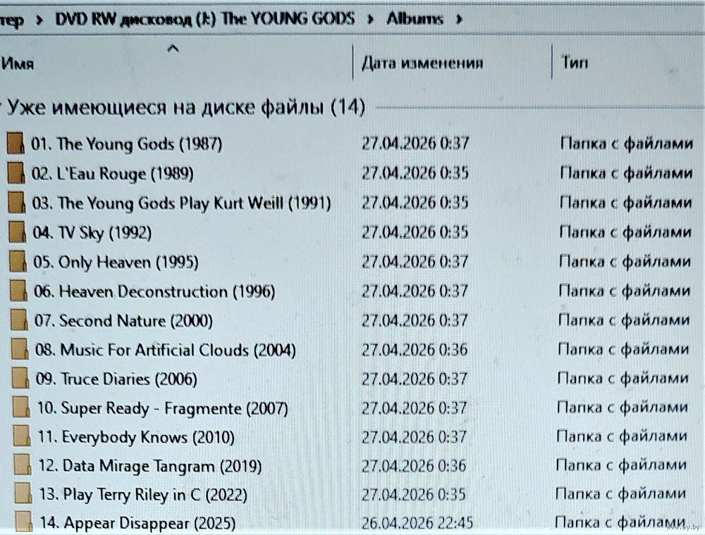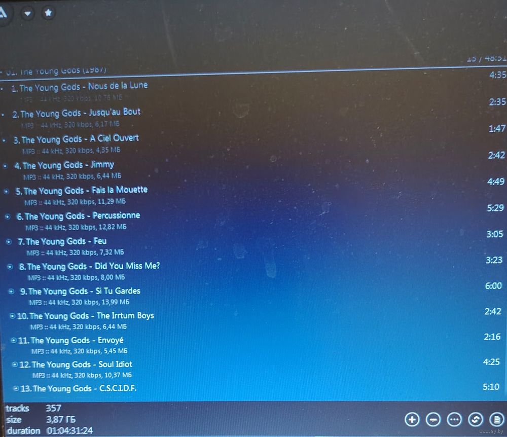 Контент см. фото конверта. При наличии таковых в треки вшиты обложки альбомов. Качество 320 kbps (если напротив названия альбома не указано иное). Покупателям, совершившим покупки на сумму от 50 до 100 руб. скидка 5%, от 101 до 200 руб. - 10%, более 201 руб. - 20%. Заказы на сумму менее 5 руб. с 2024 г. не высылаю. Ознакомиться с творчеством можно здесь:https://musify.club/artist/the-young-gods-11145/discography