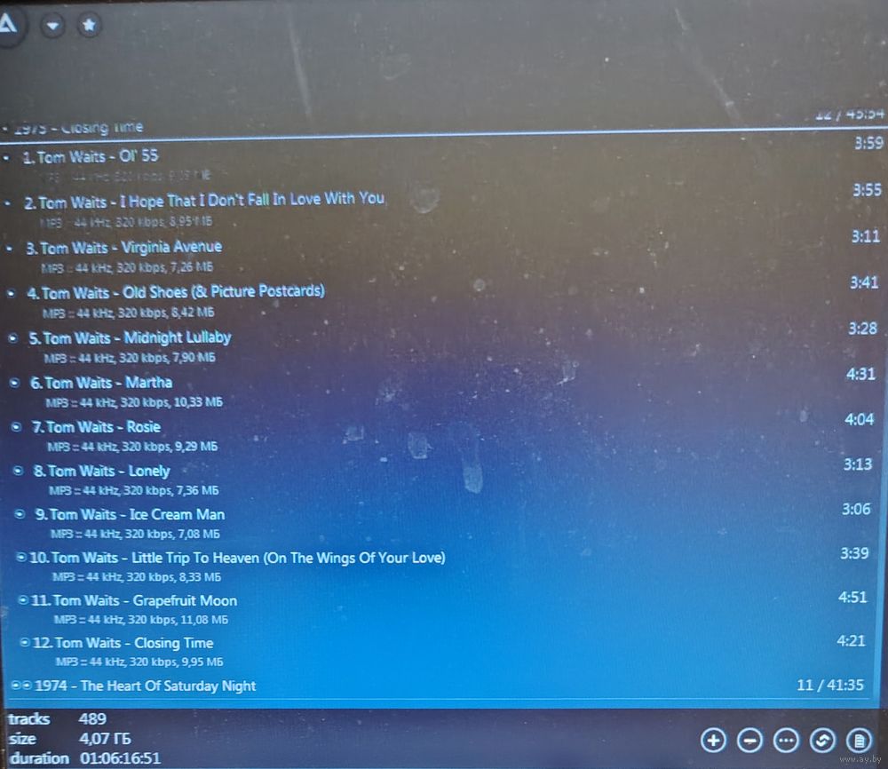 Контент см. фото конверта. При наличии таковых в треки вшиты обложки альбомов. Качество 320 kbps (если напротив названия альбома не указано иное). Покупателям, совершившим покупки на сумму от 50 до 100 руб. скидка 5%, от 101 до 200 руб. - 10%, более 201 руб. - 20%. Заказы на сумму менее 5 руб. с 2024 г. не высылаю. Ознакомиться с творчеством можно здесь: https://musify.club/artist/tom-waits-1700/discography