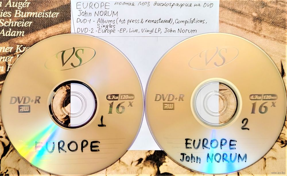 DVD МР3 дискография EUROPE, John NORUM на 2-x DVD.