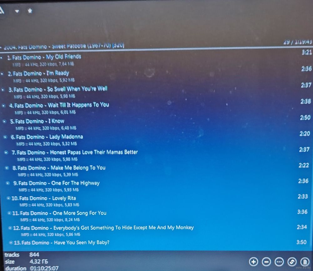 При наличии таковых в треки вшиты обложки альбомов. Качество 320 kbps (если напротив названия альбома не указано иное). Покупателям, совершившим покупки на сумму от 50 до 100 руб. скидка 5%, от 101 до 200 руб. - 10%, более 201 руб. - 20%. Заказы на сумму менее 5 руб. с 2024 г. не высылаю. Ознакомиться с творчеством можно здесь: https://musify.club/artist/fats-domino-23237/discography