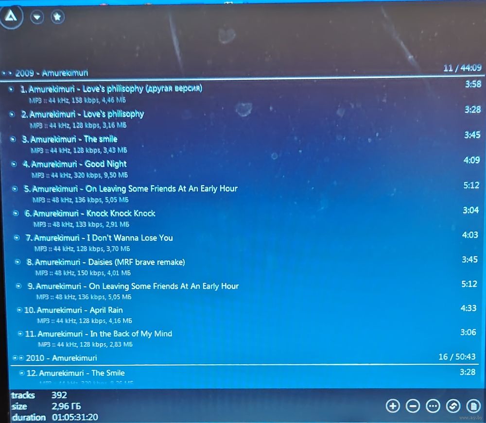 Уважаемые потенциальные покупатели, посетители данного аукциона и просто хорошие люди, случайно открывшие данную страничку! Возможно, начальная цена на данный лот покажется Вам слишком высокой, но тому есть несколько причин: 1) качественно записать DVD MP3 диск не так просто, как может показаться на первый взгляд - подбор контента, тщательная проверка и редактирование файлов и папок, правильный подбор файловой системы для того, чтобы диск воспроизводился на всех устройствах, поддерживающих DVD формат и многие другие нюансы; 2) в последнее время стоимость чистых DVD-R дисков значительно возросла; 3) выставляя лот, я даю 100% гарантию читаемости данного диска, что подтверждается строкой AIMP плеера, который никогда не выдаст конечный результат (общее время, количество треков и занимаемое место музыкальными файлами на диске), если хотя бы один файл во время сканирования либо не считался, либо "подвис". Надеюсь на Ваше понимание.