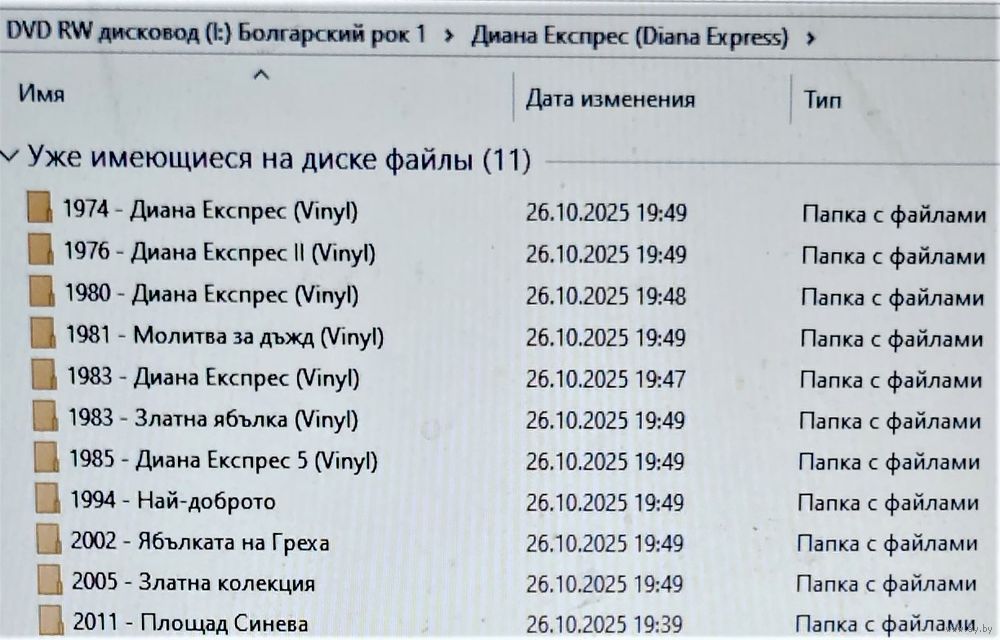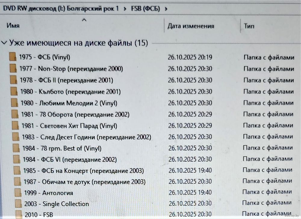 Контент - см. фото. При наличии таковых в треки вшиты обложки альбомов. Качество 320 kbps (если напротив названия альбома не указано иное). Покупателям, совершившим покупки на сумму от 50 до 100 руб. скидка 5%, от 101 до 200 руб. - 10%, более 201 руб. - 20%. Заказы на сумму менее 5 руб. с 2024 г. не высылаю. Ознакомиться с творчеством можно здесь: https://musify.club/artist/fsb-637289/discography; https://musify.club/artist/georgy-minchev-644483/discography; https://musify.club/artist/vasil-naidenov-593348/discography; https://musify.club/artist/diana-express-117885/discography; https://musify.club/artist/tangra-442991/discography; https://musify.club/artist/zlatni-struni-643123/discography; https://musify.club/artist/signal-bolgariya-59743/discography; https://musify.club/artist/stanislav-slanev-662661/discography; https://musify.club/artist/shturcite-591719/discography