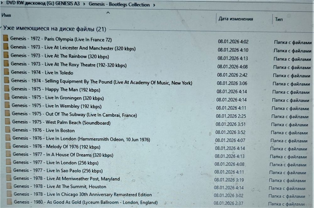 DVD MP3 GENESIS полная дискография - studio original & remastered, live, singles & EP's, botlegs, etc. на 3-x DVD-9.