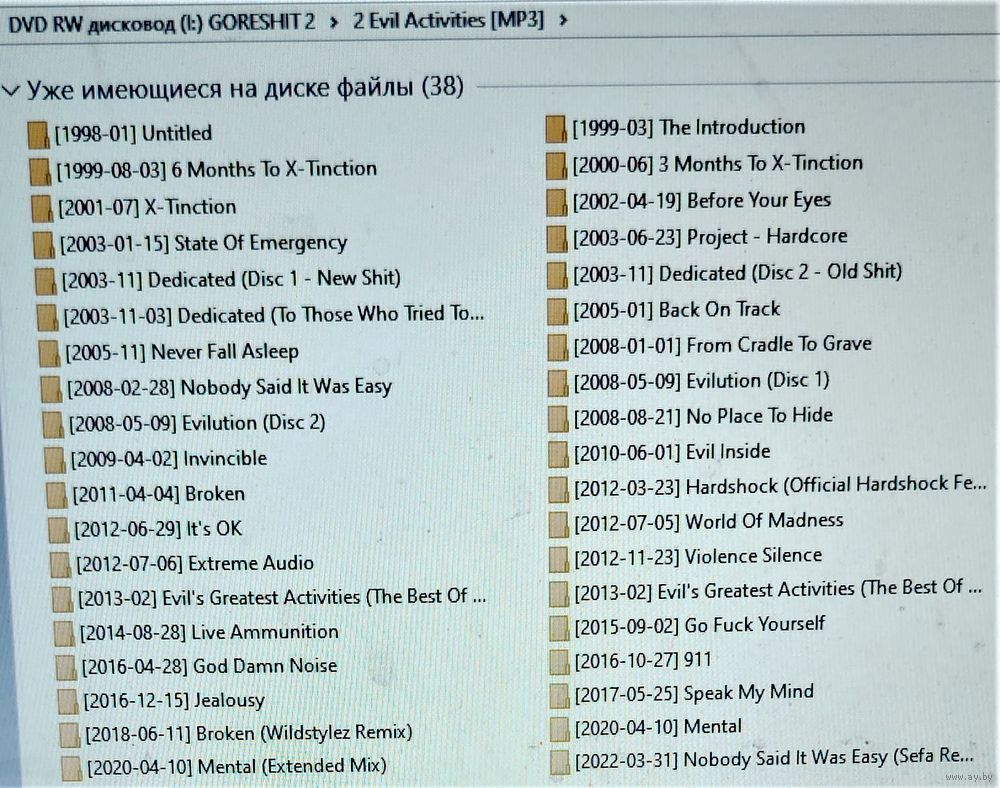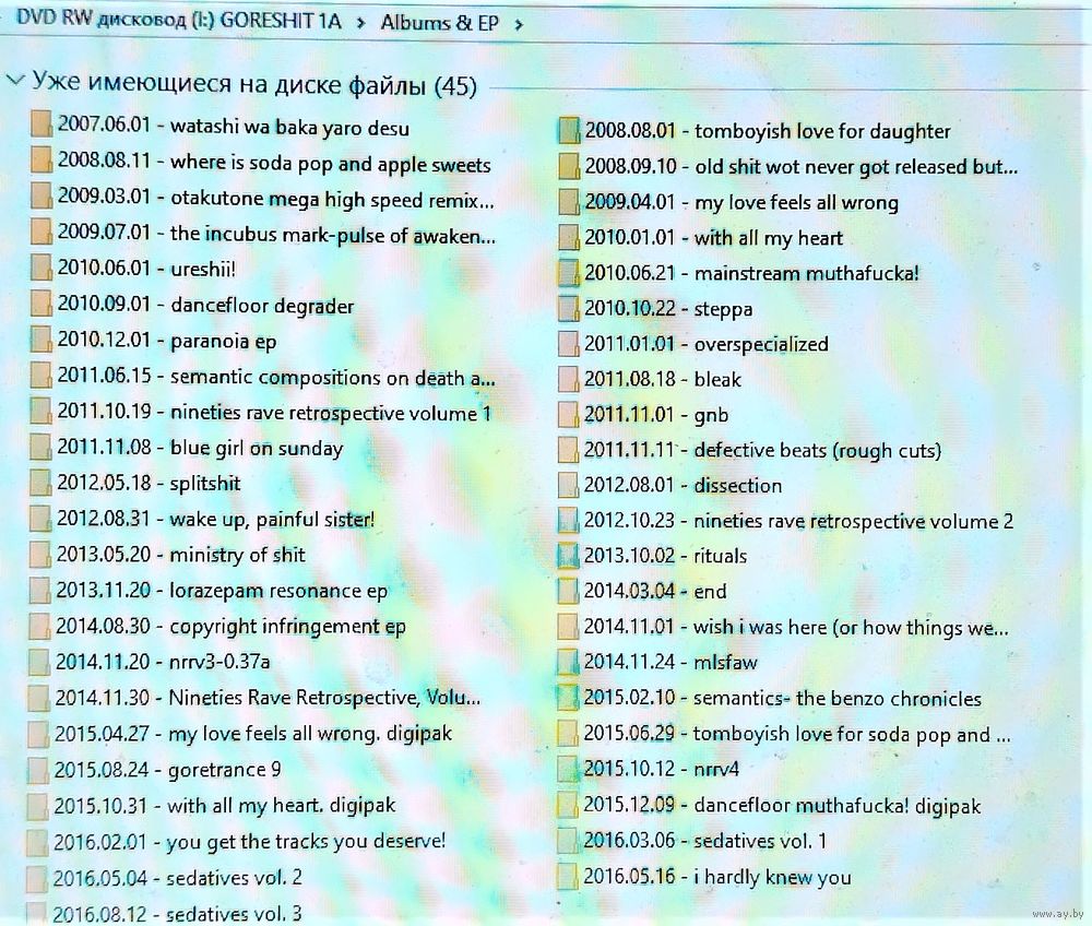 DVD МР3 полная дискография GORESHIT, EVIL ACTIVITIES, FOXXY DEKAY - 2 диска - DVD9 (двусторонний) + DVD5.